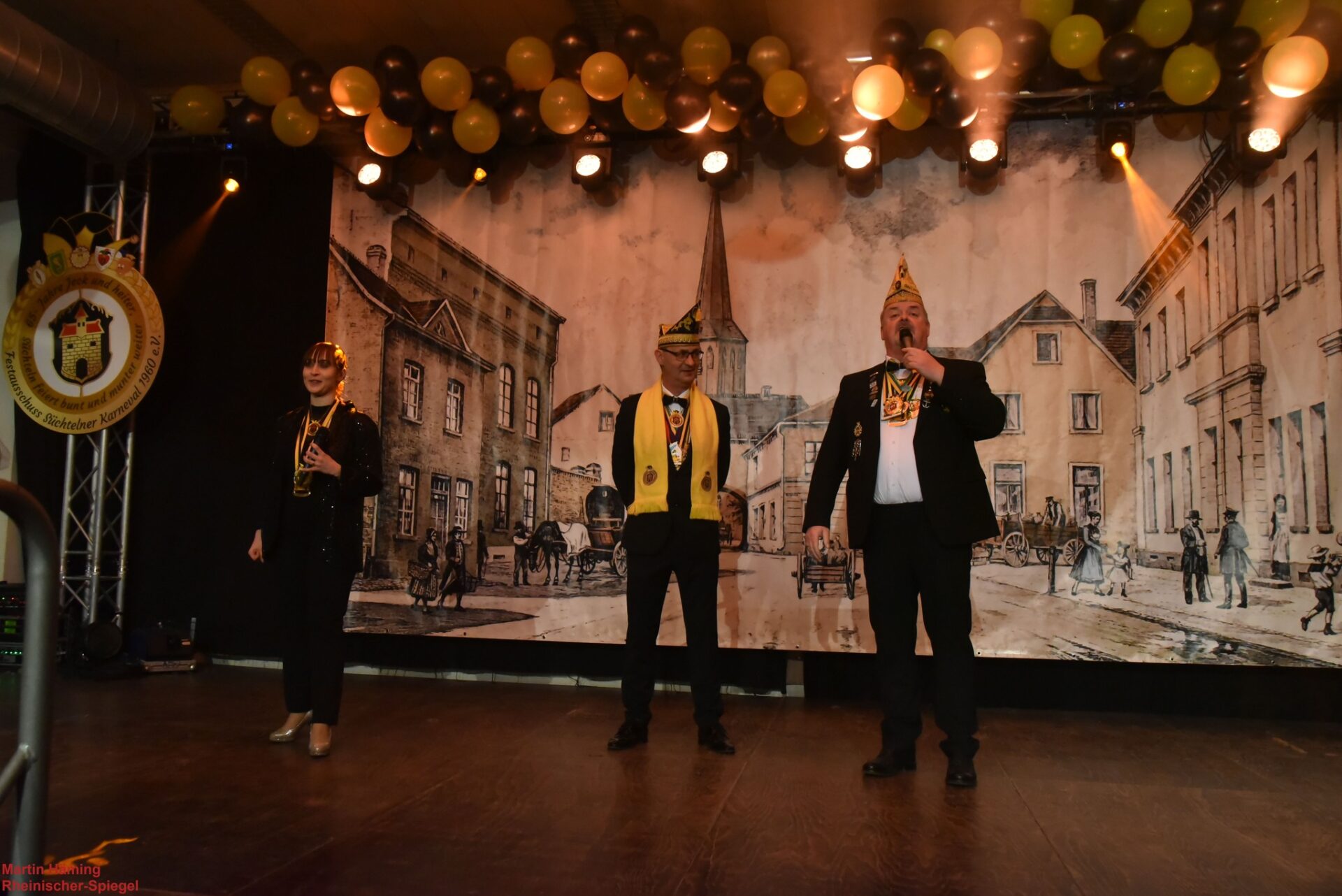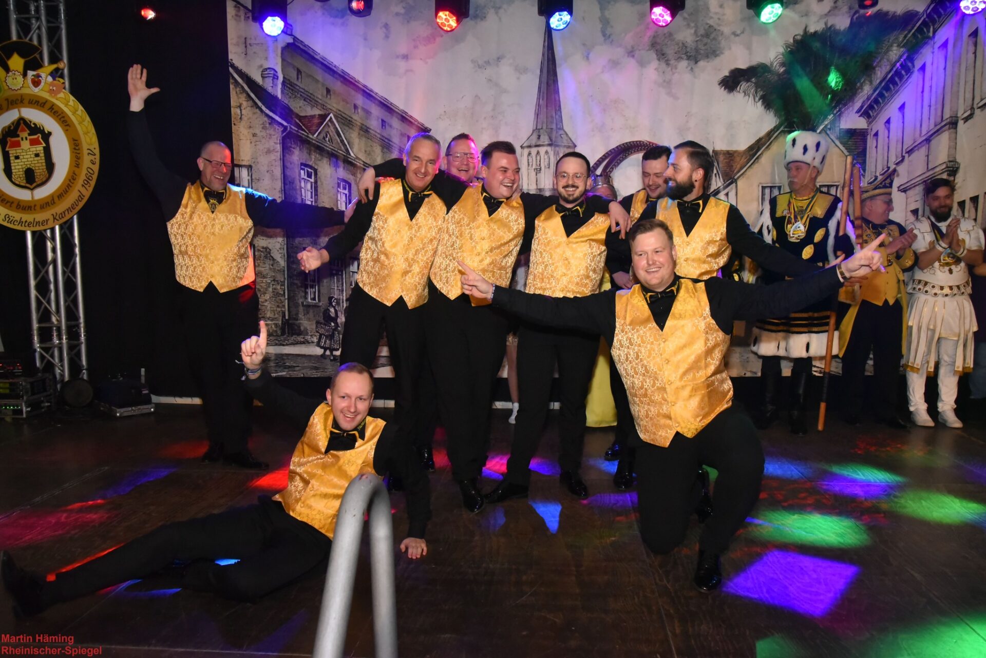 Der Saal summte noch von der letzten Melodie, als sich die Stimmen zu einem Chor formten und der vertraute Ruf erklang: „Sötelsche Muhre…Soat…Muhre…Soat…Muhre…Soat“ — ein dreifaches Hoch, das wie eine Fahne durch die Reihen flatterte. Und wer wollte, konnte sich erheben und die Süchtelner Karnevals-Hymne anstimmen — zur Melodie der britischen Nationalhymne — ein Schlussbild, das so vertraut und so ausgelassen war wie die Stadt selbst …