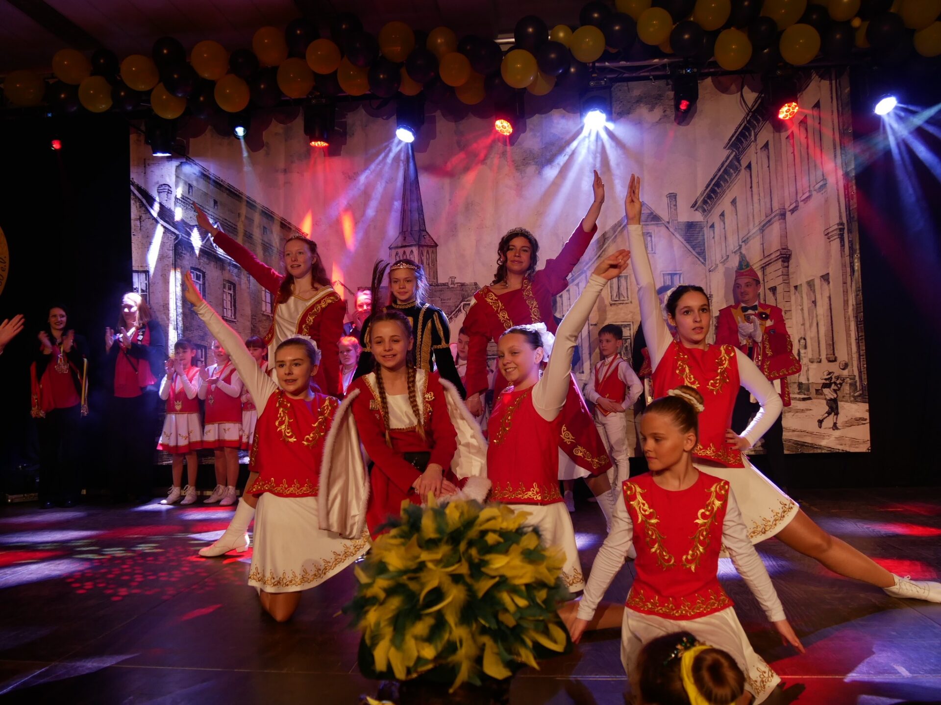 Die Karnevalsgesellschaft Hoseria schickte ihre kleine und große Garde auf die Bühne und erntete tosenden Applaus. Die Tanzgarde Alt Viersen 2020 gab ebenfalls einen energievollen Beitrag, und die Crazy Kids aus Dülken — begleitet von ihrem Kinderprinzenpaar Marie I. und Nico I. — hatten die Reise über den Berg gern in Kauf genommen: ihre Präsenz wurde mit jubelndem Willkommen belohnt.