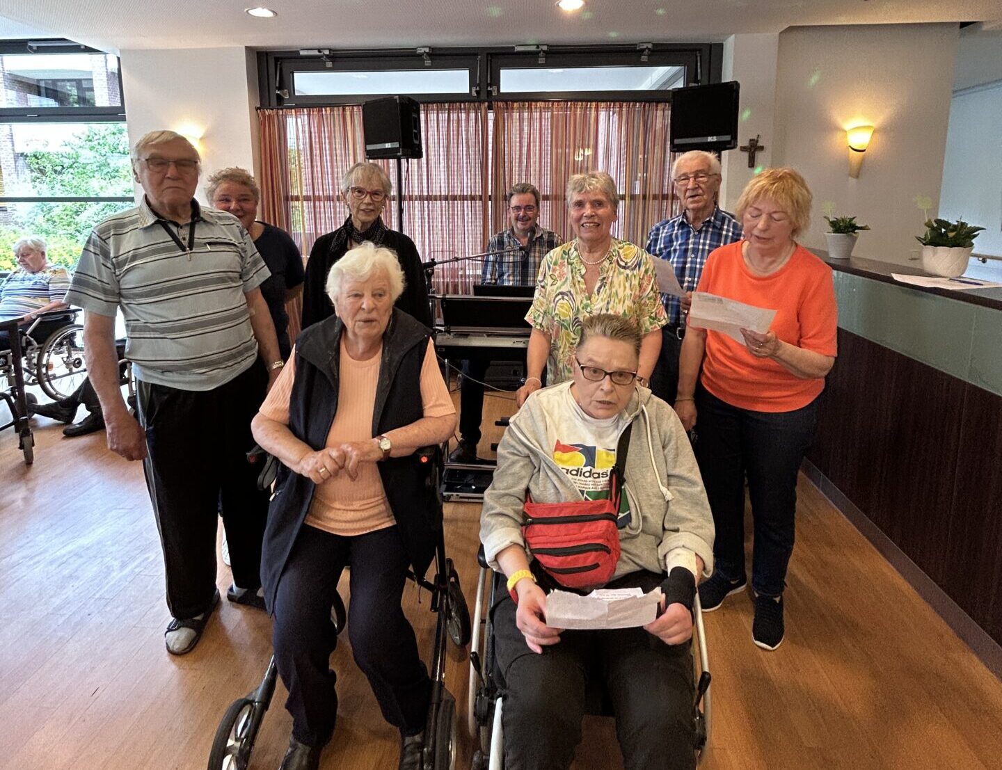 Zehn Bewohnerinnen und Bewohner singen regelmäßig mit. Auch Pflegekräfte und der Soziale Dienst begleiten die Proben, aktiv oder im Hintergrund. Es geht nicht darum, jeden Ton zu treffen, denn im Mittelpunkt steht die Gemeinschaft. „Wir nehmen alle mit“, sagt Zetzen. „Auch wer nicht mehr alles versteht oder gut hört, kann oft erstaunlich sicher mitsingen.“