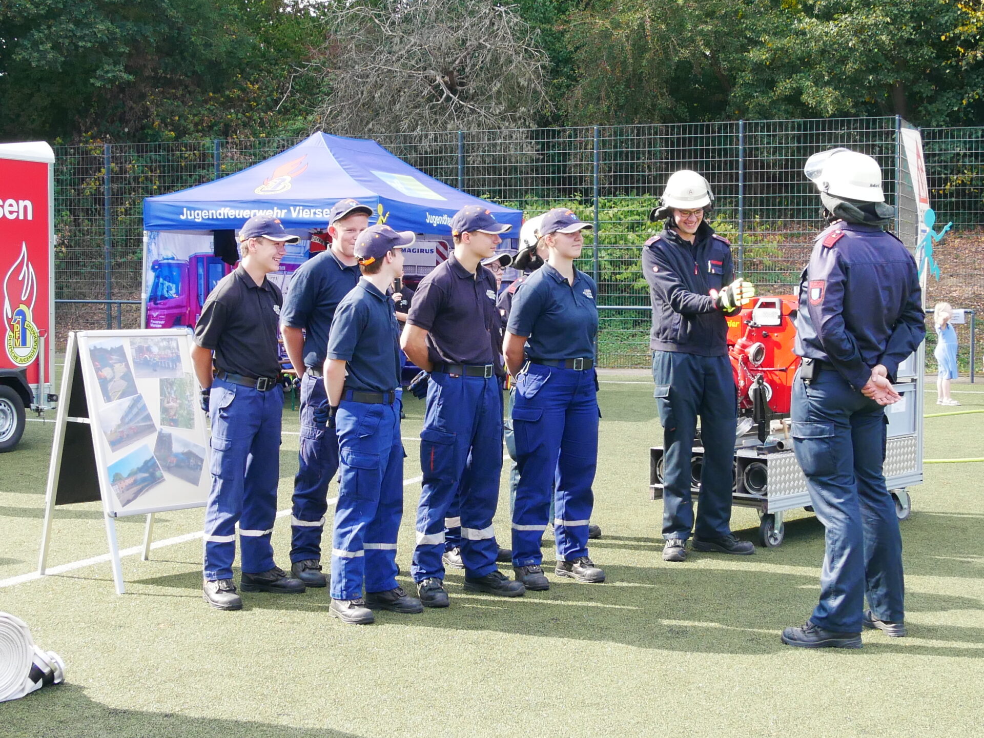 Überall auf dem Gelände warteten Attraktionen: Die riesige Hüpf- und Abenteuerburg war pausenlos belagert, während beim Bungeetrampolin begeisterte Kinder immer höher in den Himmel sprangen. Ein Publikumsmagnet war auch die Löschstation der Jugendfeuerwehr Viersen, an der sich die kleinen Besucher als Nachwuchs-Feuerwehrleute ausprobieren konnten. „Meine Tochter war kaum davon wegzubekommen“, lachte eine Mutter aus Dülken. „Sie hat das Wasserspritzen so ernst genommen, als stünde sie vor einem richtigen Einsatz.“