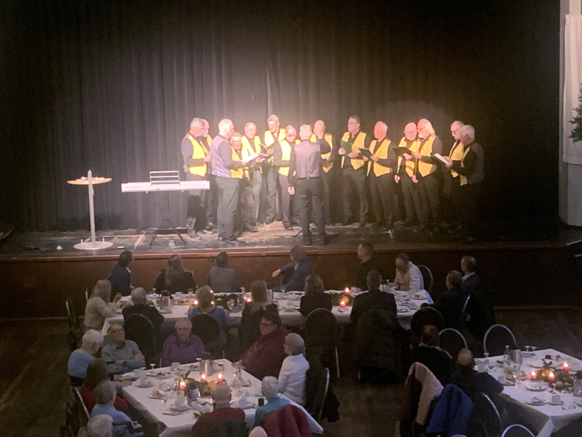 Schon kurz darauf erklangen vertraute Melodien: Die Sänger der Liedertafel Dülken, längst ein unverzichtbarer Bestandteil des Programms, nahmen ihre Plätze ein. Mit ihren warmen Stimmen erfüllten sie den Saal mit weihnachtlichen Weisen und heimatverbundenen Liedern, die viele Gäste leise mitsummen ließen. Besonders aufmerksam wurde es, als sie ein altes Lied von Udo Jürgens anstimmten – ein Stück, das angesichts der aktuellen Zeitumstände eine neue Tiefe gewann und für nachdenkliche Momente sorgte.