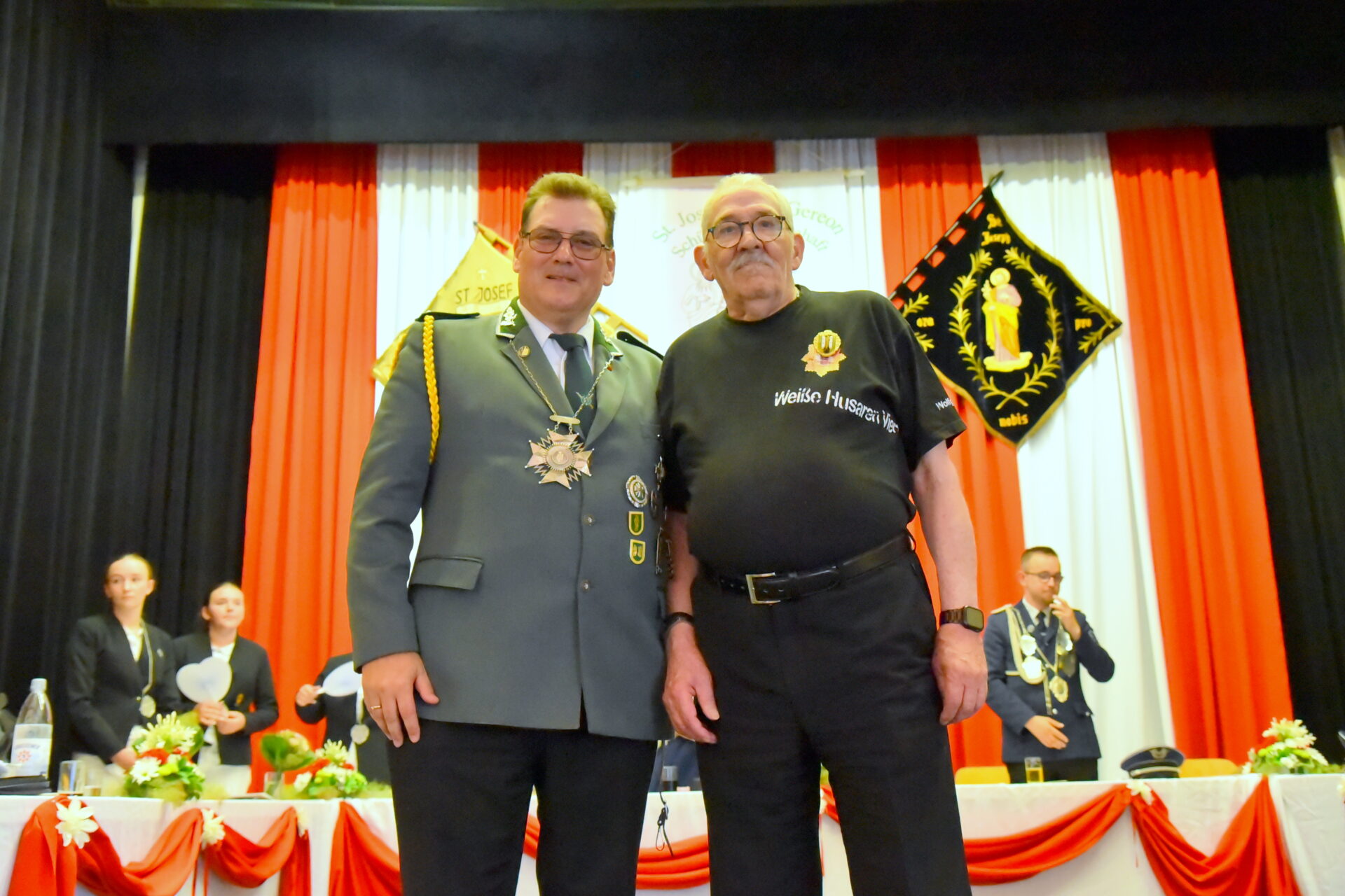 Es war ein wunderbarer Tag für die ersten Ehrungen: Monika Oster und Bernd Schneider erhielten das Ehrenkreuz des Sports in Bronze, Lukas und Philipp Paffrath wurden für ihr musikalisches Engagement mit der Schützenmusikerauszeichnung in Bronze geehrt. Bis tief in die Nacht wurde anschließend ausgelassen gefeiert.