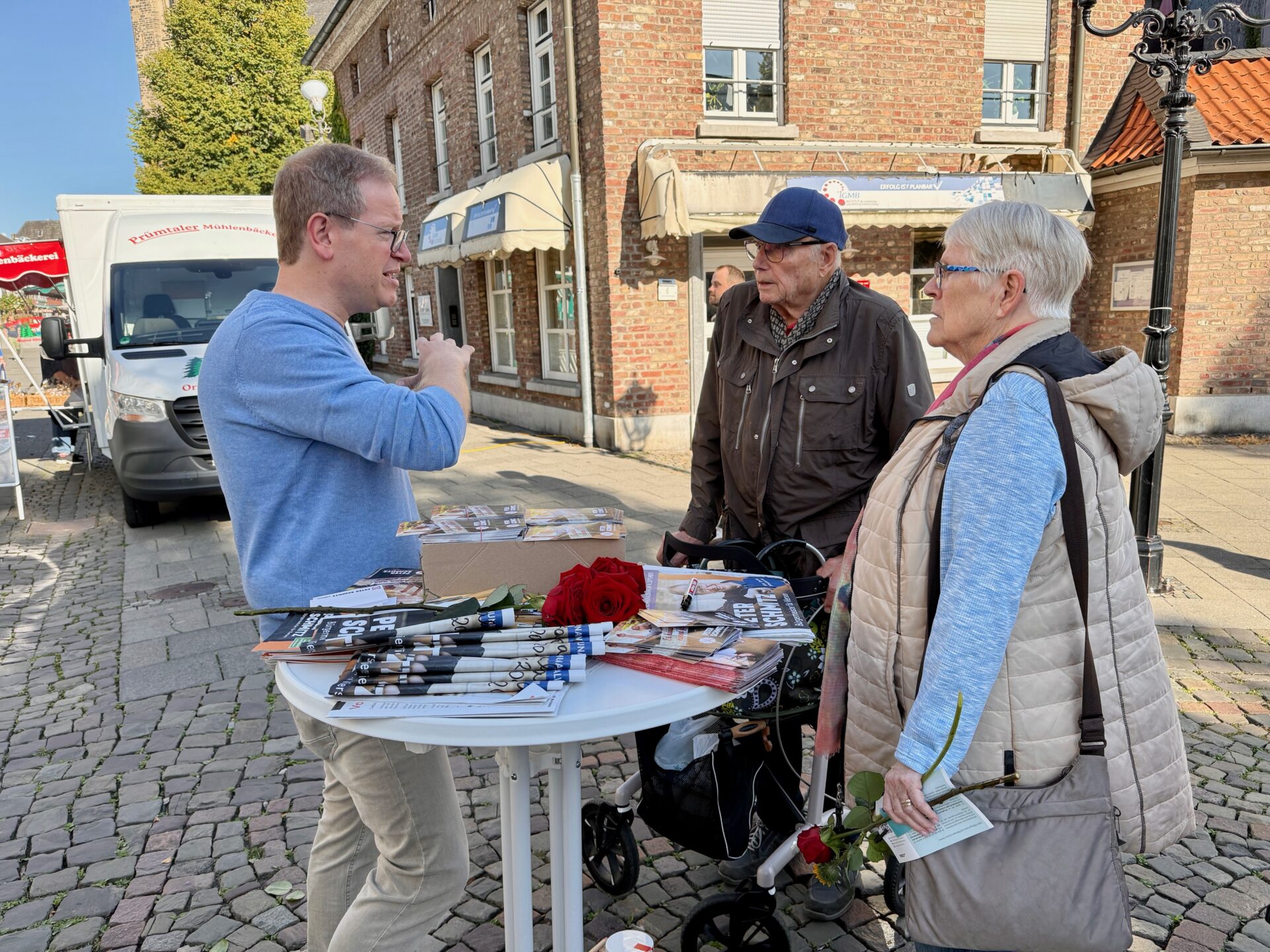 Bürgermeisterkandidat im Gespräch am Wahlstand in Süchteln – Foto: Privat