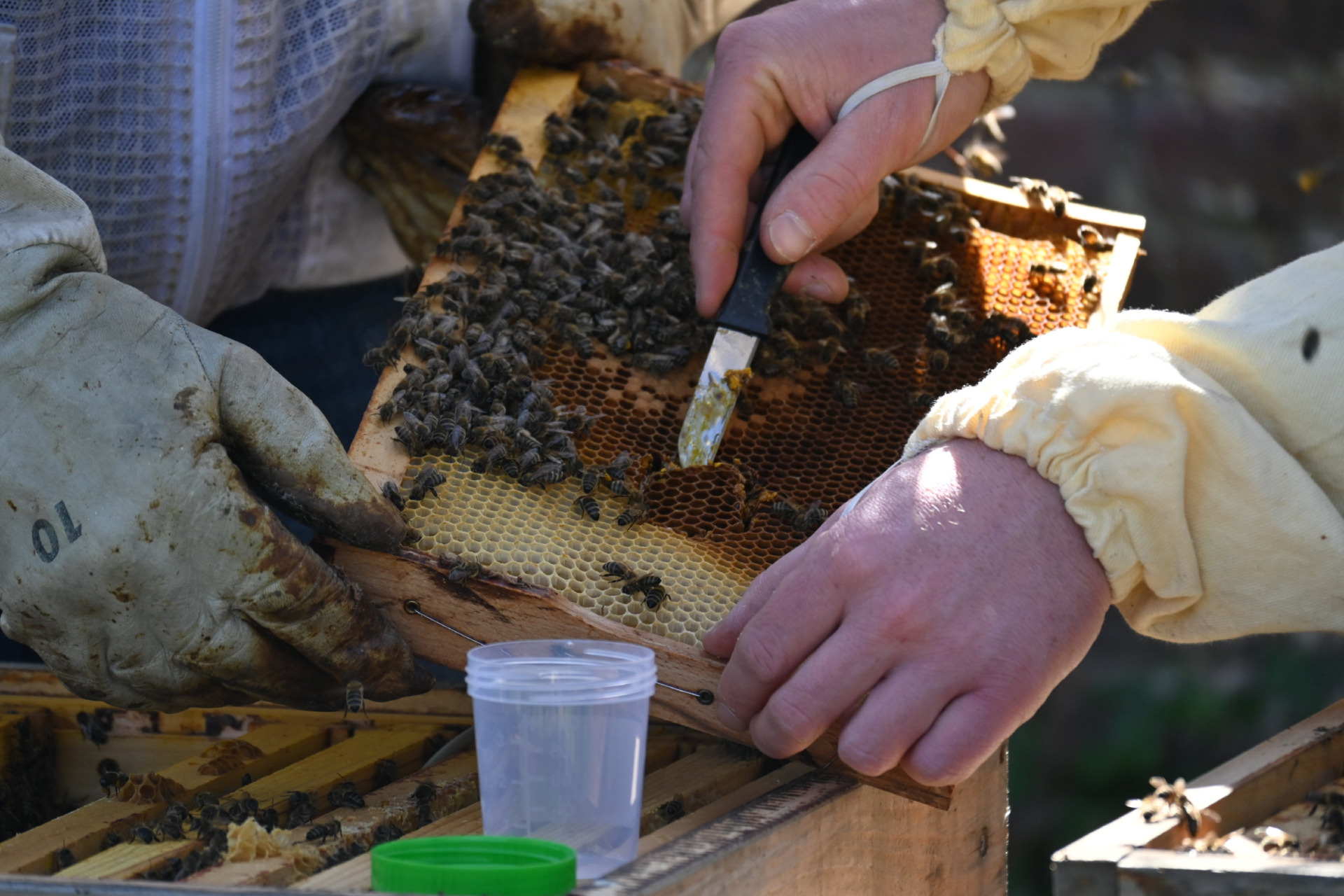 Um das zu überprüfen, kombinieren die Forscher eine klassische Wetterstation, die direkt neben dem Bienenstock steht, mit verschiedenen Sensoren in dessen Innern., ein Frequenz- und Lautstärke-Sensor an einem Wabenrähmchen erfasst die Herz- und Dezibel-Werte des Bienen-Summens. Und eine Waage unter der Beute stellt Gewichtsveränderungen fest und dient dank integrierter SIM-Karte als Funkstation, um die Informationen direkt auf die städtische Datenplattform zu senden. Von hier aus können etwa die städtischen Starkregenexperten im Fachbereich Umwelt mit den Messergebnissen arbeiten.