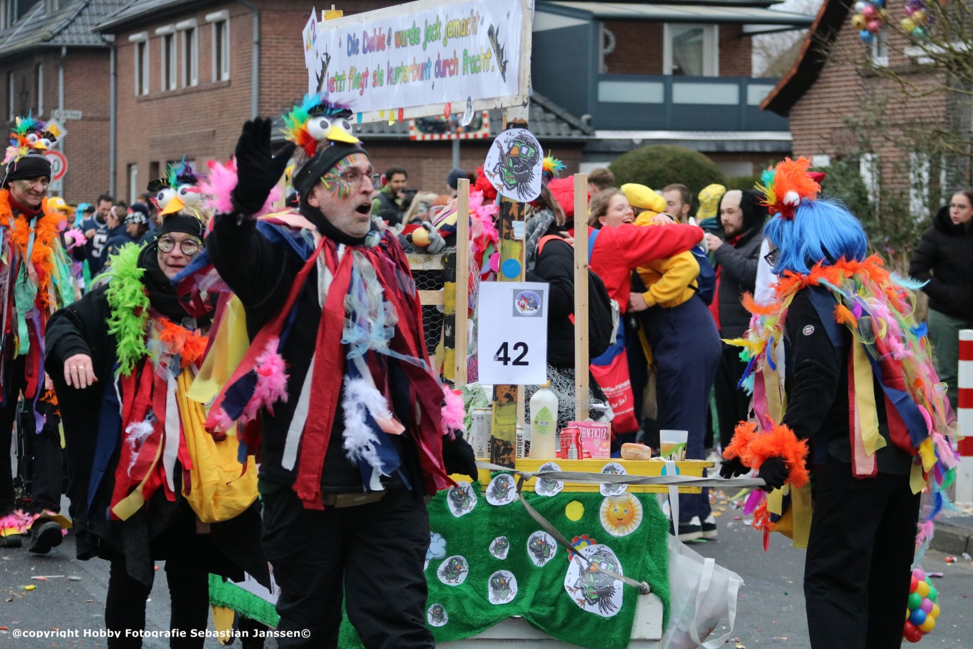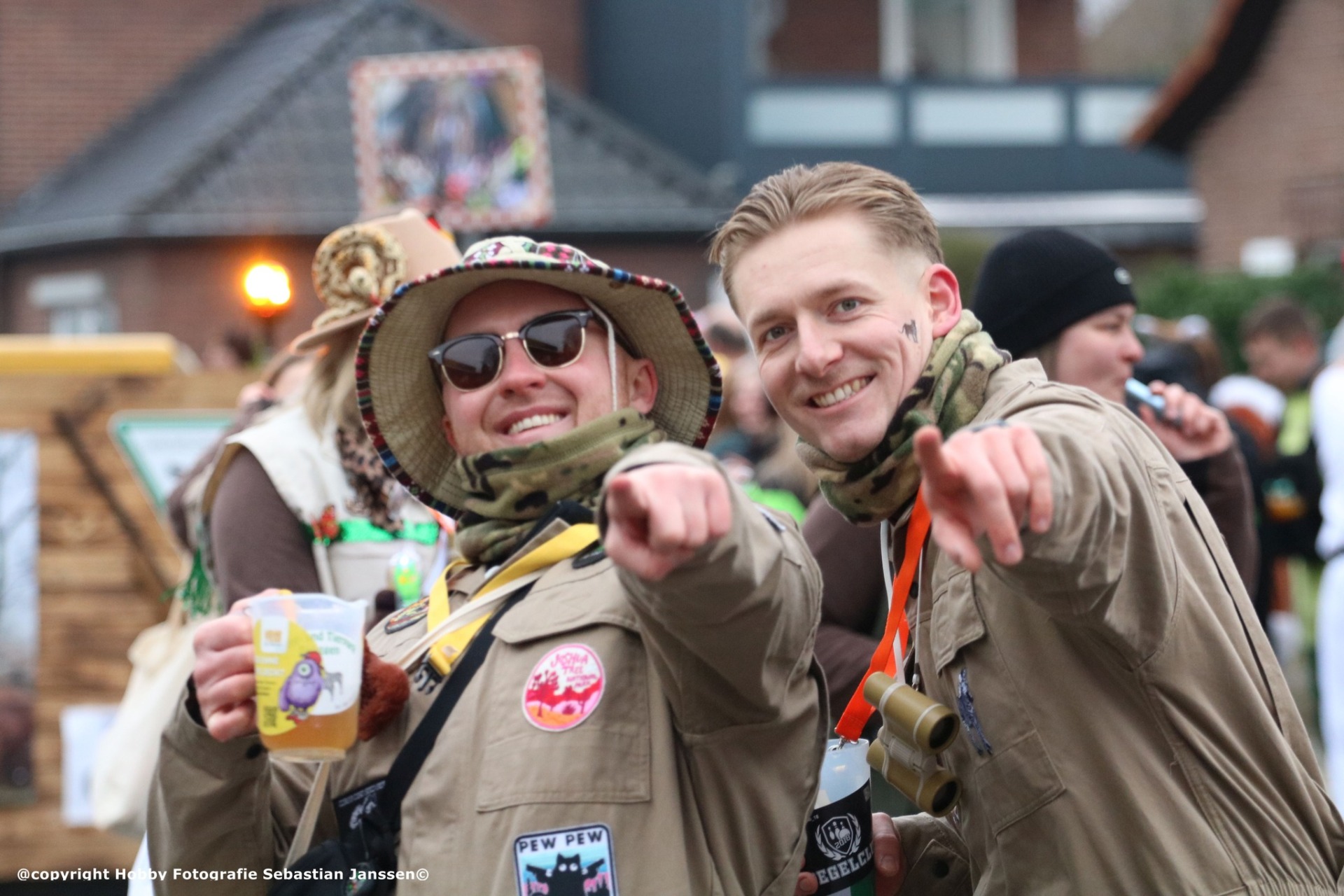 Über 54 Wagen und zahlreiche Fußgruppen bildeten den Kern des Zuges, und die Vielfalt war atemberaubend: Von phantasievollen Landjugend-Wagen über originelle Freundeskreis-Kreationen bis hin zu bunt glitzernden Fußgruppen – hier war alles vertreten. „Wir wollen zeigen, dass Karneval verbindet, egal aus welchem Ort man kommt“, lächelte ein Pirat.