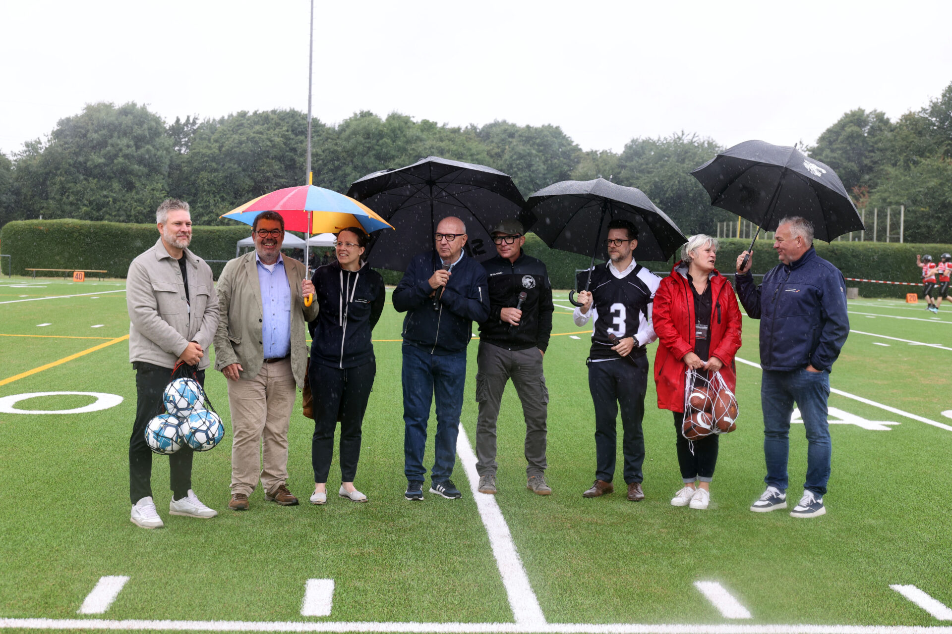 „Bei solchen Witterungen zeigt sich besonders gut, welche Vorteile solche Kunstrasenplätze für den Sport in unserer Stadt haben“, sagte Heinrichs, da es in Strömen regnete. „Und ich möchte allen Beteiligten sowie dem Verein American Sports für die Unterstützung bei der Umsetzung danken. Grundsätzlich arbeiten wir mit dem Sportstättenentwicklungsplan daran, gute Bedingungen für den Sport sowohl für Vereine und Schule als auch für alle individuell zu schaffen. Ähnlich wie hier leisten aber auch an vielen Stellen Vereine selbst einen Beitrag dazu. Gemeinschaftlich kommen wir so an vielen Stellen gut voran und können uns über Ergebnisse wie diese hier freuen.“