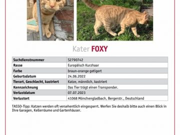 Kater Foxy ist wieder zurück – vielen Dank für die Hilfe!