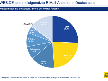 GMX und WEB.DE sind die meistgenutzten E-Mail-Anbieter Deutschlands. Mit Marktanteilen von 25,7 Prozent (GMX) und 23,1 Prozent (WEB.DE) führen die beiden heimischen Marken das Ranking an. Wirtschaft – Auf Platz […]
