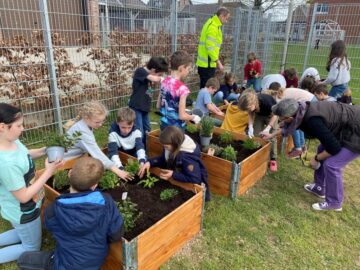 Pflanzaktion an der Grundschule in Leuth