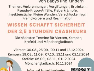 Wissen schafft Sicherheit – der Crashkurs für alle (werdenden) Eltern, Großeltern und Bezugspersonen von Babys und Kleinkindern Region – „Weißt Du was ein Pseudo-Krupp-Anfall ist oder was du bei einem […]