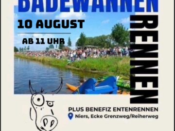 Am Sonntag, den 10.8.2025. findet ab 11:00 Uhr das 36. Badewannenrennen auf der Niers statt. Anrath – Ort des Geschehens ist wie immer die Niers in Anrath, am Grenzweg (Ecke […]