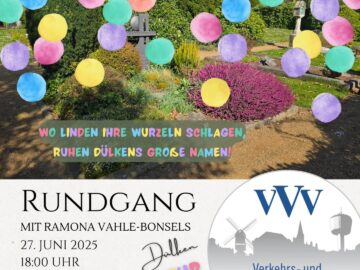 Im Rahmen von Dülken Kulturbunt lädt der Verkehrs- und Verschönerungsverein Dülken herzlich zu einem besonderen Rundgang über den Dülkener Friedhof ein. Ramona Vahle-Bonsels führt durch eine grüne Stätte des Erinnerns […]