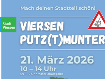 Die gemeinschaftliche Aufräumaktion „Viersen putz(t)munter“ wird in diesem Jahr am Samstag, 21. März, stattfinden. Das Orga-Team ist zuversichtlich, dass sich erneut zahlreiche helfende Hände finden werden, die sich am großen […]