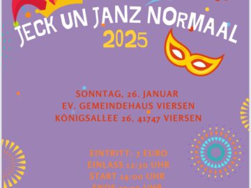 Wir singen uns ins neue Jahr. Seien Sie dabei und gehen fröhlich beschwingt weiter. Viersen – Am Freitag, 03. Januar, 11.00 Uhr, laden wir zum Neujahrssingen ein. Ort: Diakonia, Betreutes […]