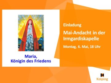 Die Kolpingsfamilie Süchteln lädt zur Maiandacht in die Irmgardiskapelle auf dem Süchtelner Heiligenberg. Viersen-Süchteln – „Zu Ehren der Gottesmutter laden wir ein zur Marienandacht. Die Andacht findet am Montag, den […]