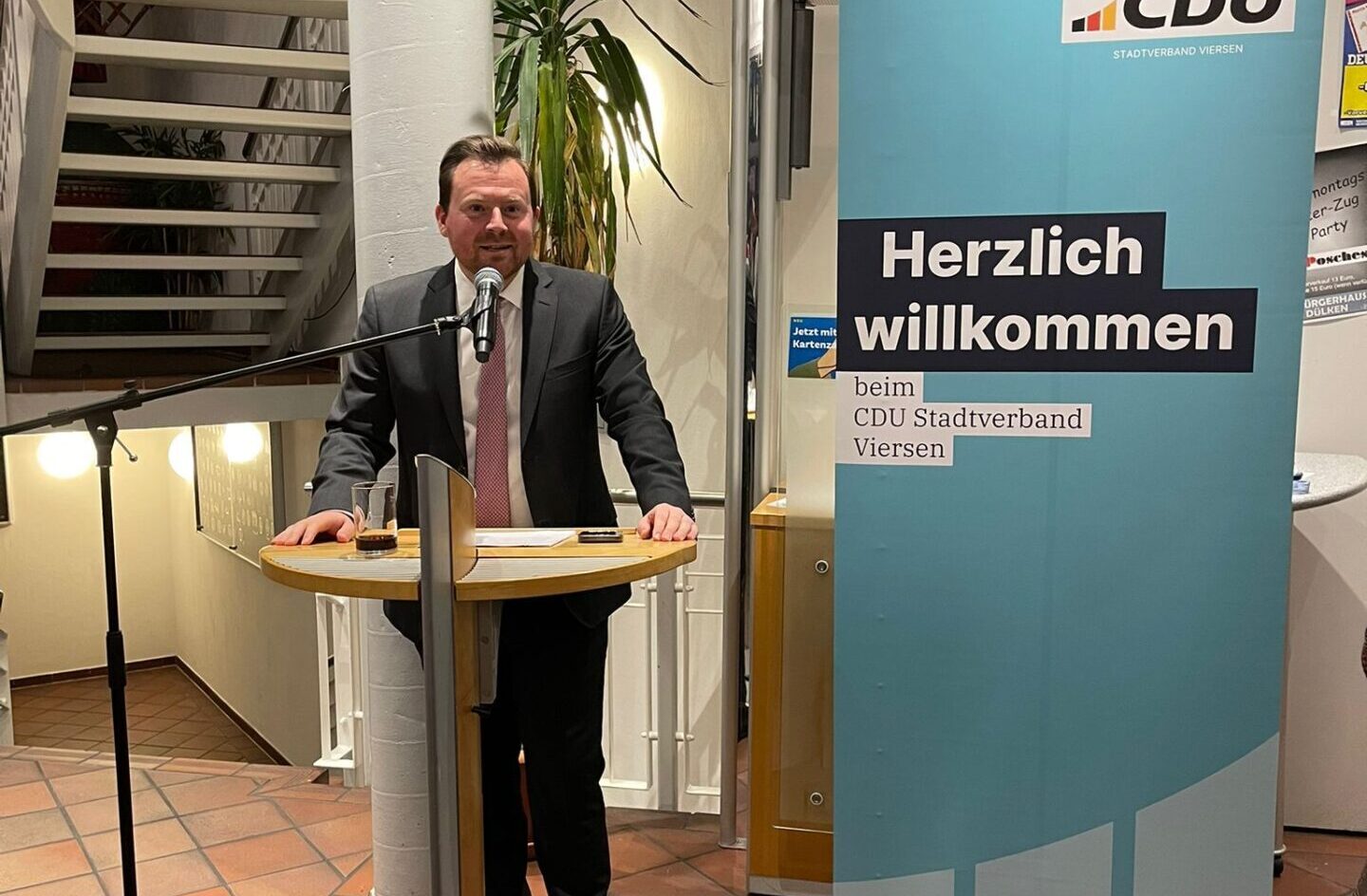 Achten sprach anschließend in seiner Rede vor rund 80 Gästen die verschiedenen Herausforderungen für seine Partei und die dort angebundene Ratsfraktion an. Er freute sich sehr über die, aus Sicht der CDU, erfolgreiche Kommunalwahl im vergangenen Jahr. Aber Achten definiert den Erfolg auch deutlich als Herausforderung. Das gute Ergebnis sei auch ein Arbeitsauftrag im Sinne der Menschen der Stadt Viersen.