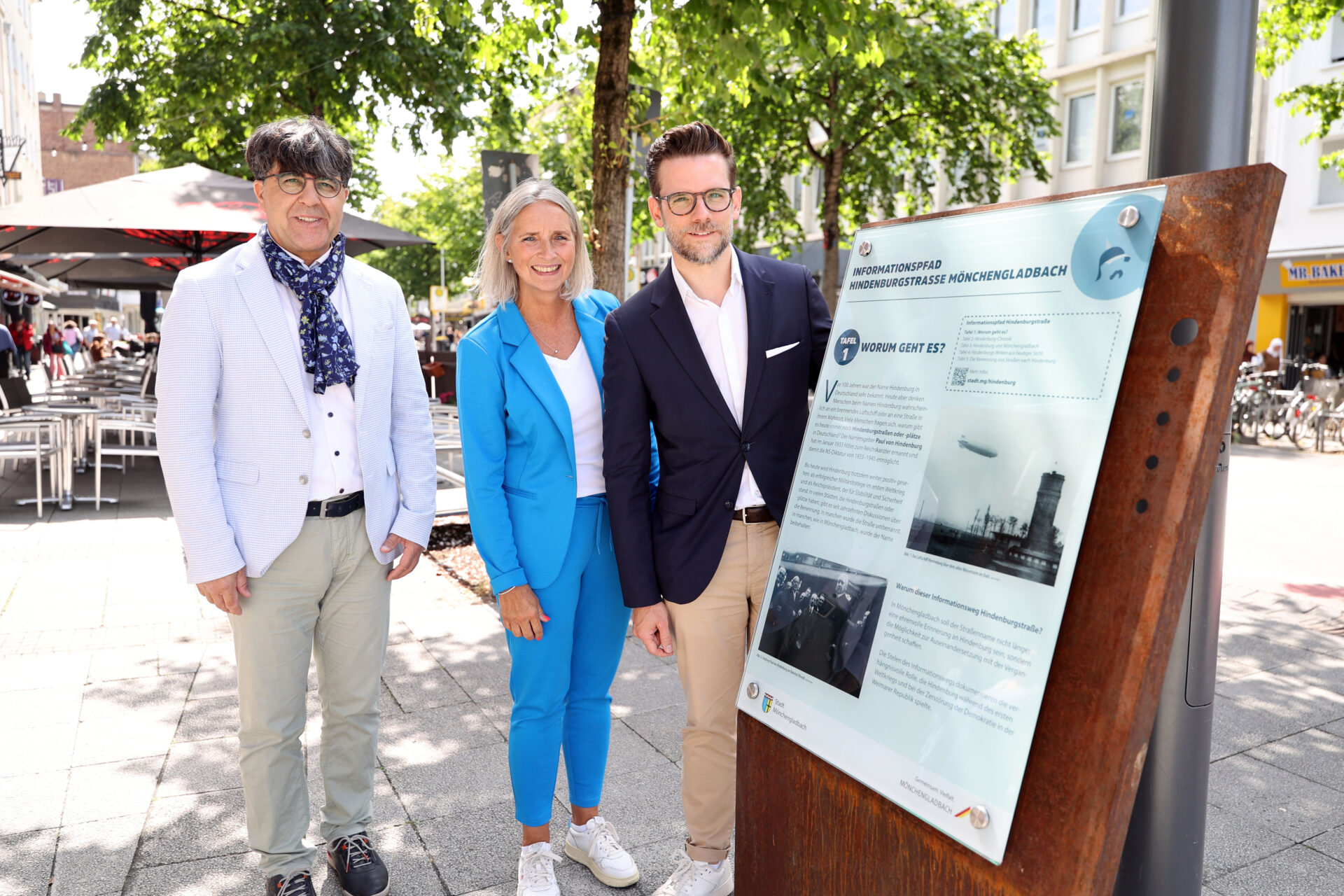 Am 11. Dezember 2024 hat der Rat der Stadt Mönchengladbach die Installation eines Informationspfades auf der Hindenburgstraße beschlossen. Das Konzept orientiert sich an einem bereits bestehenden Informationspfad der Stadt Wunstorf in Niedersachsen. „Das Stadtarchiv Wunstorf hat dankenswerterweise die Genehmigung erteilt, die Gestaltung der Stelen als Vorlage zu nutzen“, sagte die Beigeordnete Schüßler. „Die Texte wurden aber speziell auf die historische Entwicklung Mönchengladbachs zugeschnitten. Und ich bin mir sicher, dass sie viele Menschen zum Nachdenken anregen werden. Vielleicht wird darüber auch die ein oder andere Diskussion ausgelöst. Prozesse, die nicht nur in Sachen Geschichtsverständnis, sondern auch für unsere heutige Demokratie von Bedeutung sind.“