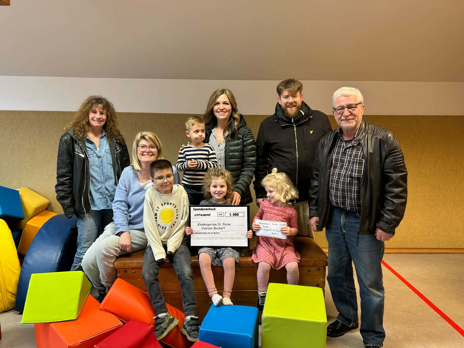 Eine Spende in Höhe von 1.000 Euro hat das Bockerter Lichterhaus dem Kindergarten St. Peter Bockert überreicht. Mit dem Betrag soll eine neue große Turnmatte für die Turnhalle der Einrichtung angeschafft werden.