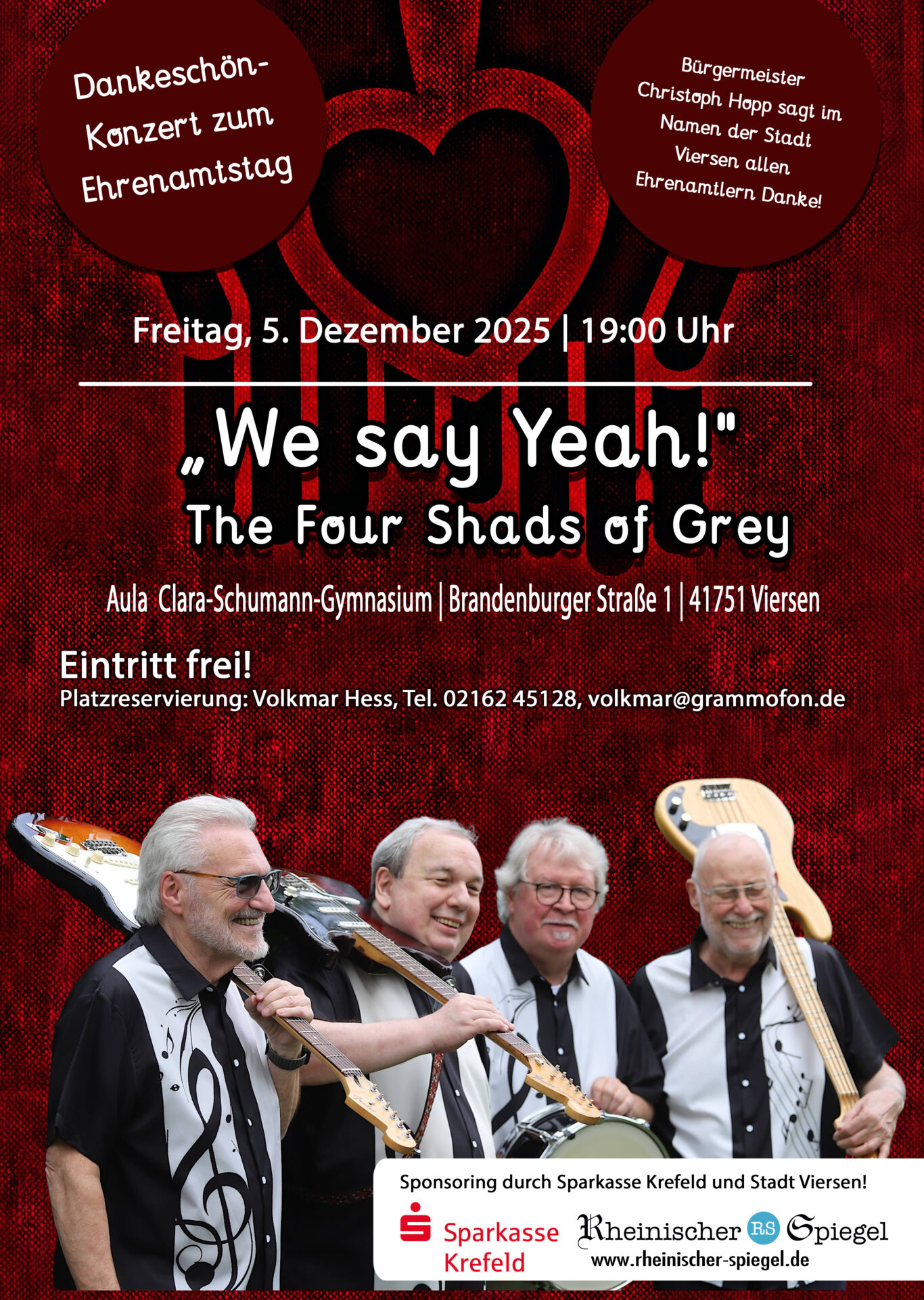 Eine Anmeldung an Volkmar Hess Tel. 02162 – 45128 Email: volkmar@grammofon.de ist erforderlich. Plätze werden namentlich gekennzeichnet. Dank Unterstützung durch Sparkasse Krefeld und Stadt Viersen ist für kostenfreie Getränke und die ein oder andere Überraschung gesorgt. (opm)