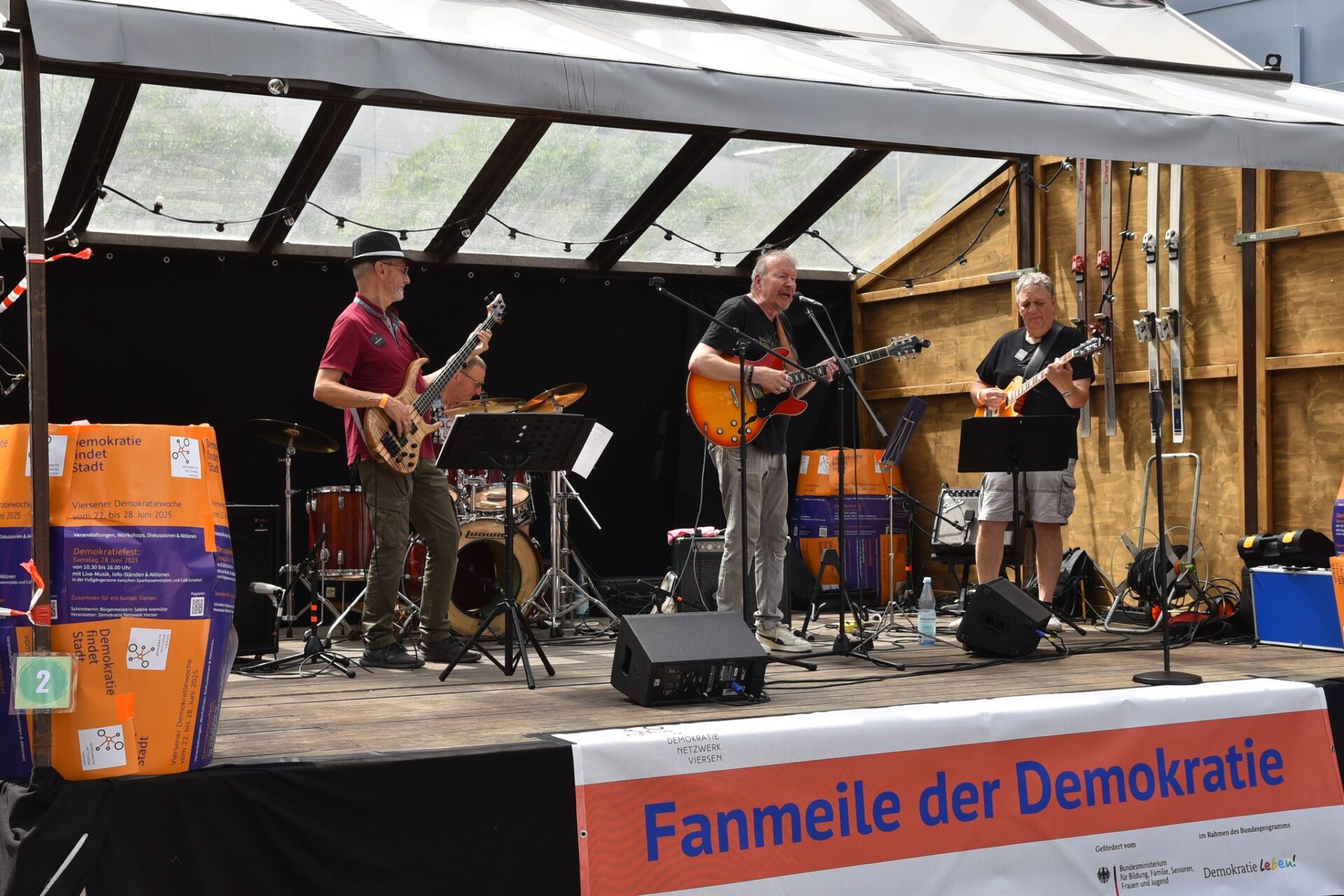 Das Demokratie-Netzwerk bedankte sich ausdrücklich bei den Musikerinnen und Musikern für ihre kostenfreien Auftritte sowie bei zahlreichen weiteren Unterstützer*innen – darunter die EGN Viersen, die Buchhandlungen im Kaiser-Eck und Frau Eule, die mit begleitenden Ausstellungen das Thema Demokratie literarisch aufgriffen.