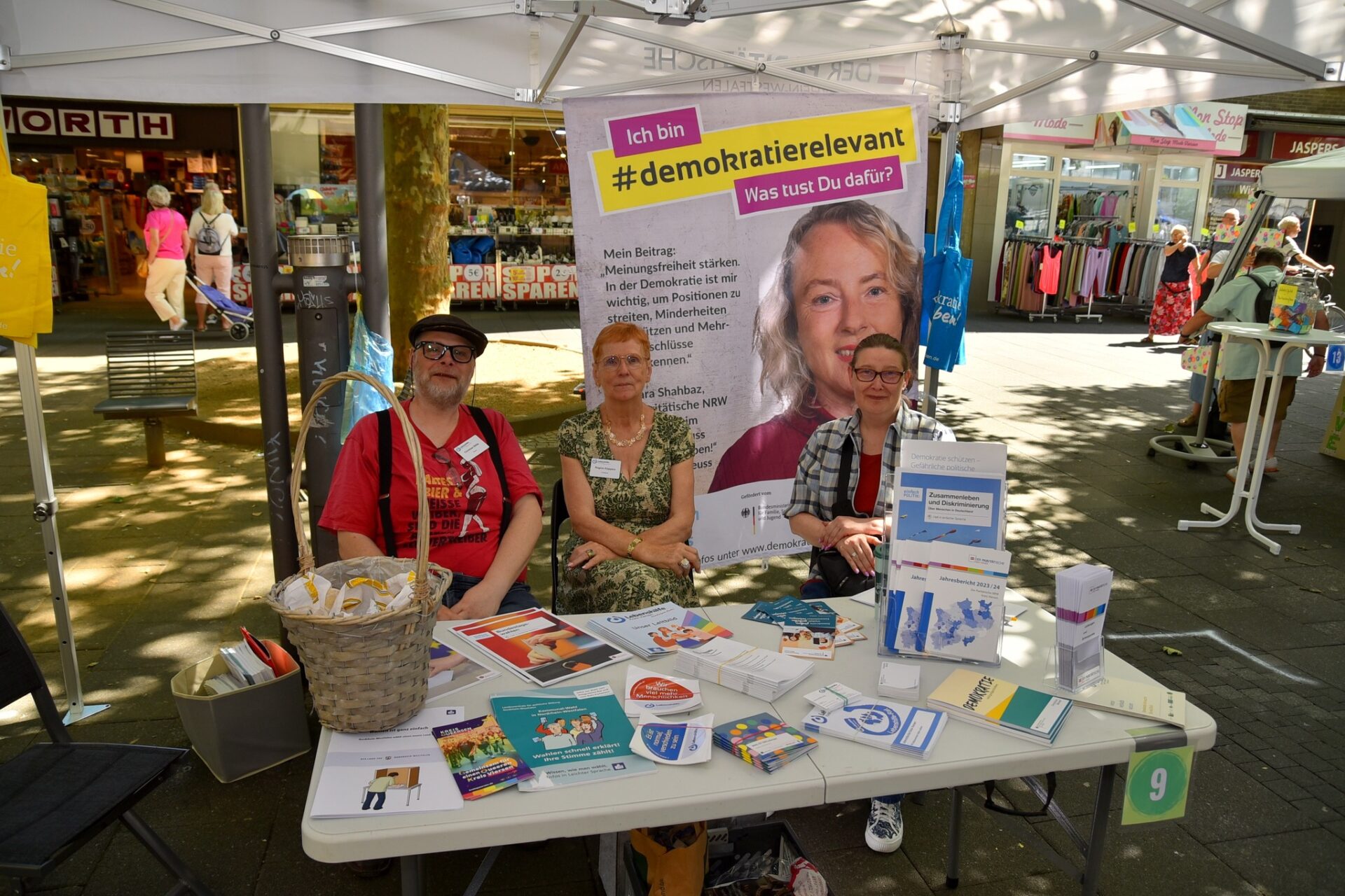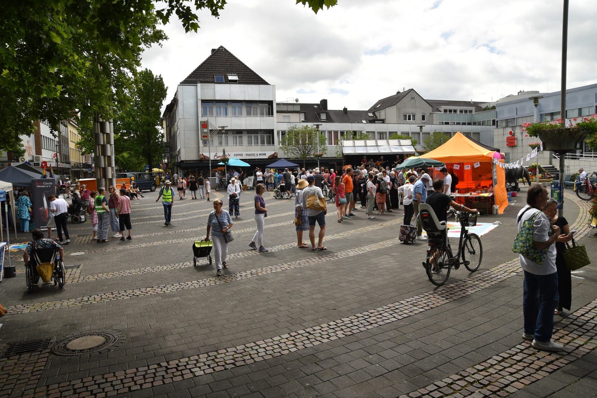 Zwischen dem Sparkassenvorplatz und dem Café Extrablatt feierten hunderte Besucherinnen und Besucher gemeinsam mit über 20 teilnehmenden Initiativen, Vereinen, Gruppen und Parteien die gelebte Demokratie – offen, friedlich und vielfältig.