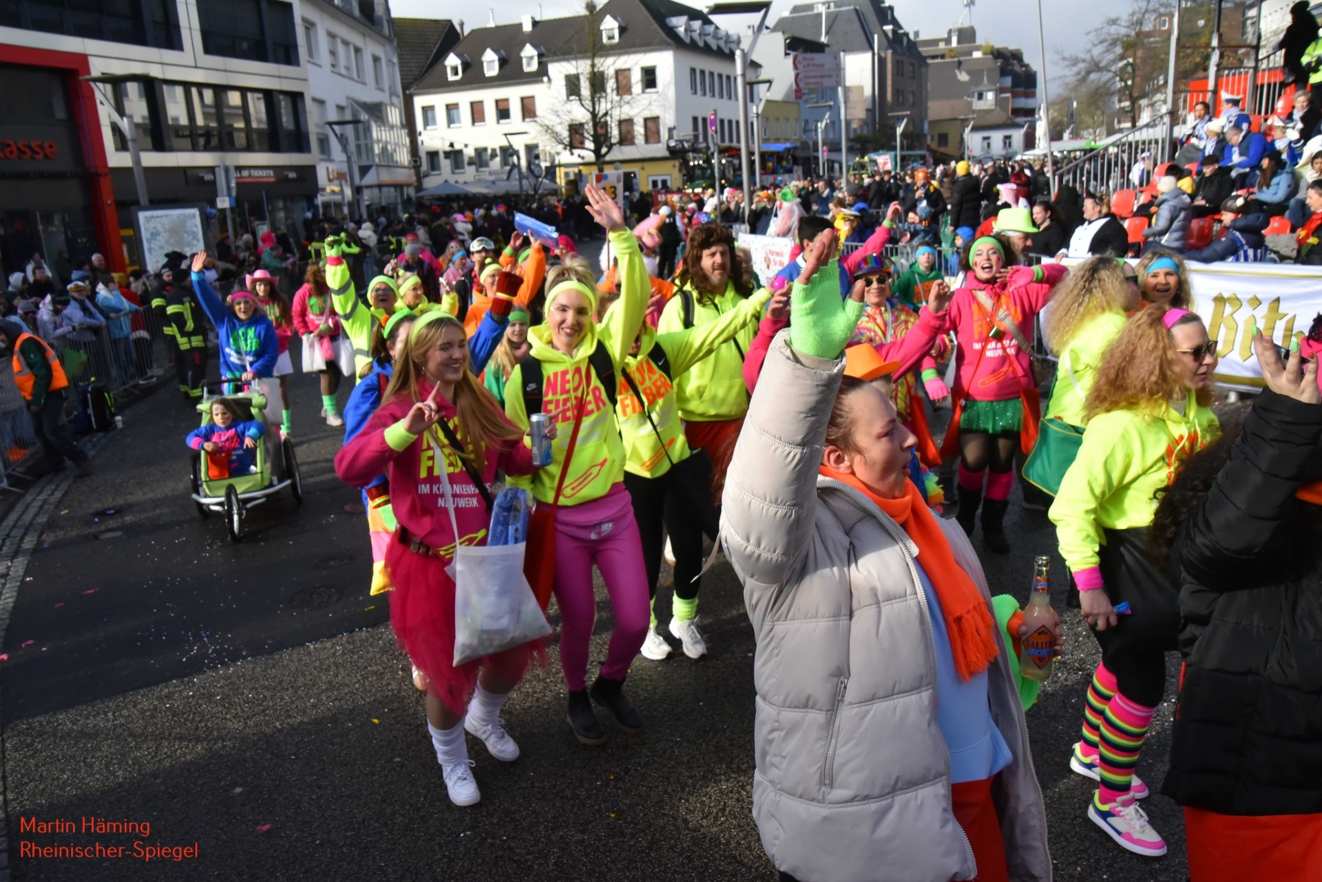 Angeführt wurde der Zug von den Standartenreitern des Mönchengladbacher Karnevalsverbandes, gefolgt von unzähligen Jecken, die mit Fantasie, Glitzer und Herzblut auf die Straße gingen. Die ersten, die den Zug mit dem traditionellen „Halt Pohl“ begrüßten, waren Prinz Marc I. und Prinzessin Niersia Janine. Wie es die Tradition verlangt, nahmen sie zunächst die Parade ab, ehe ihr eigener Wagen sich als vorletzter in den Zug einreihte. Das Kinderprinzenpaar, Luis I. und Annick I., war bereits zuvor mit der Kinderprinzengarde gestartet und hatte die jüngsten Närrinnen und Narren begeistert.