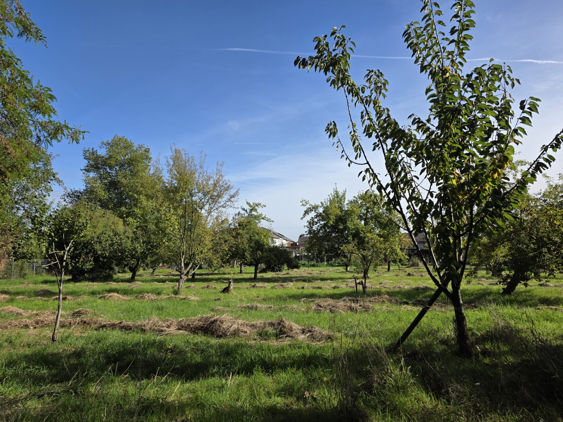 Unterstützung für das Projekt kommt aus der Nachbarschaft. Ein Anwohner hilft beim Rückschnitt der Bäume und wird auch bei den Neupflanzungen Hand anlegen. Sogar das Heu, das durch regelmäßige Schnitte anfällt, hat bereits einen Abnehmer gefunden – ein Eselhalter aus der Region. Und zwischen den Obstbäumen summen längst die Bienenstöcke eines Imkers, die den Ort zusätzlich beleben.