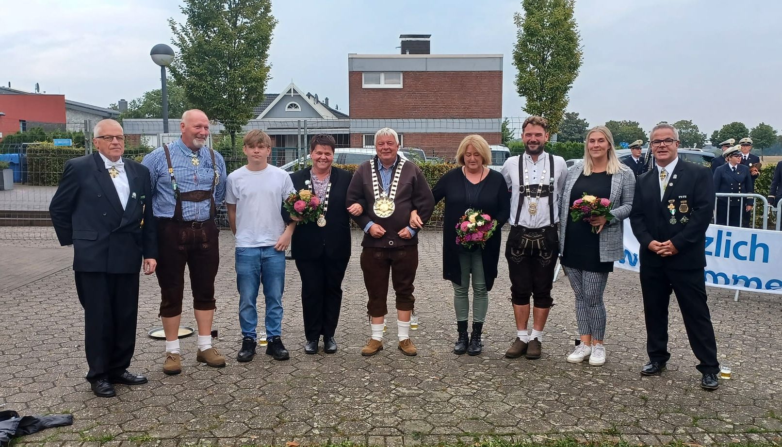 Mit großer Freude kann nun die kommende Schützensaison begangen werden und als neuer König darf Olaf Kuhlen mit seiner Frau Helga das Silber anlegen. Als Ministerin hat er sich Sabine Robbel, als Minister Patrick Hinz mit seiner Frau Sarah zur Seite gestellt. (dt)