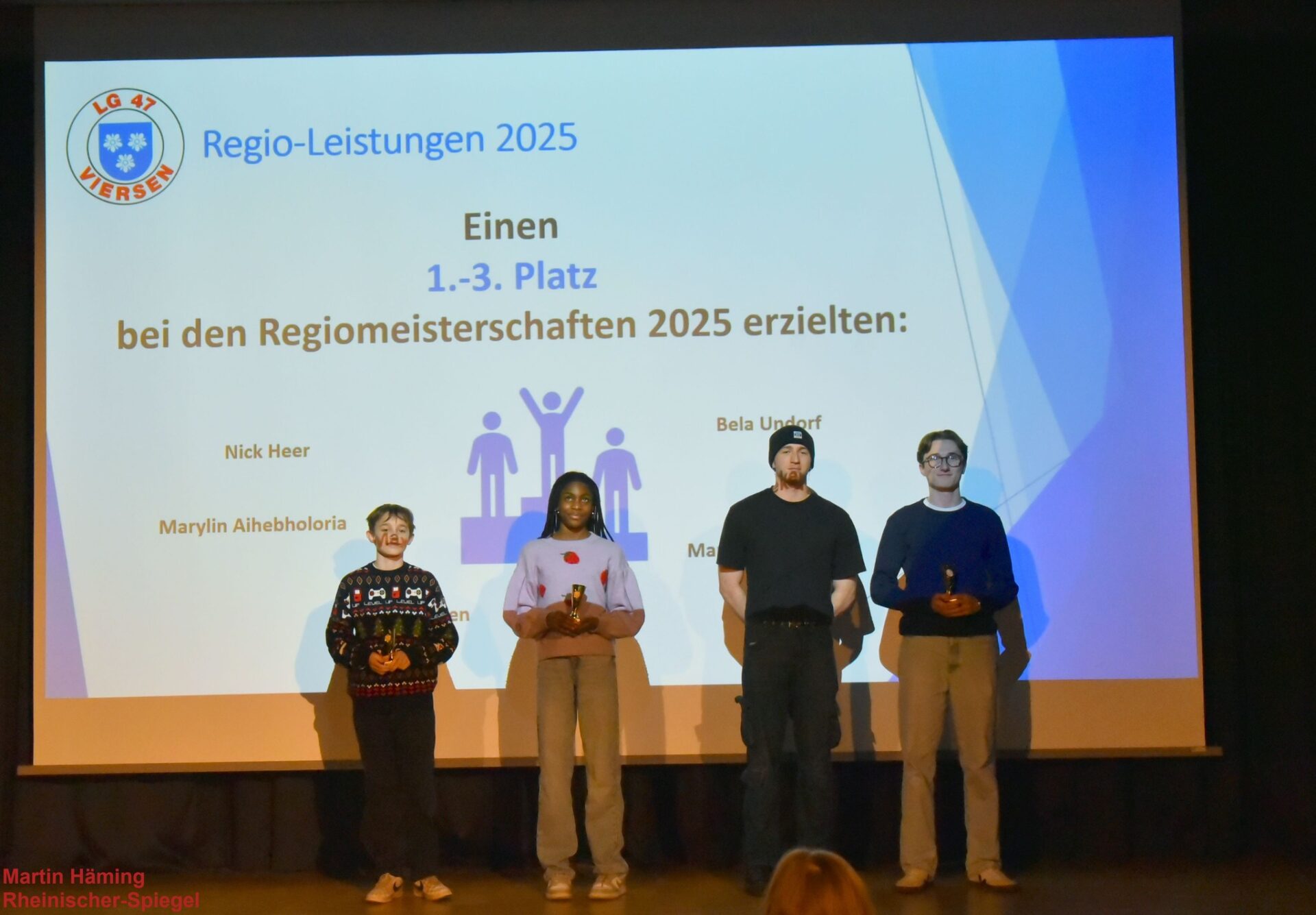 Für ihre herausragenden Leistungen bei den Regionsmeisterschaften 2025 wurden ebenfalls geehrt: Timo Schoog, Amy Burghardt, Lara Remigius, Lea Stockmar, Anna-Lena Baumeister, Naile Kesiciler, Merle Banniza, Martina Kanu, Sylvester Barth, Ashley Ukaegbu, Linda Remigius und Janne Woters, die die Plätze vier bis zwölf erreicht hatten. Die Podiumsplätze belegten Max Pauen, Bela Undorf, Nick Heer, Marylin Aihebholoria und Martin Boeken.