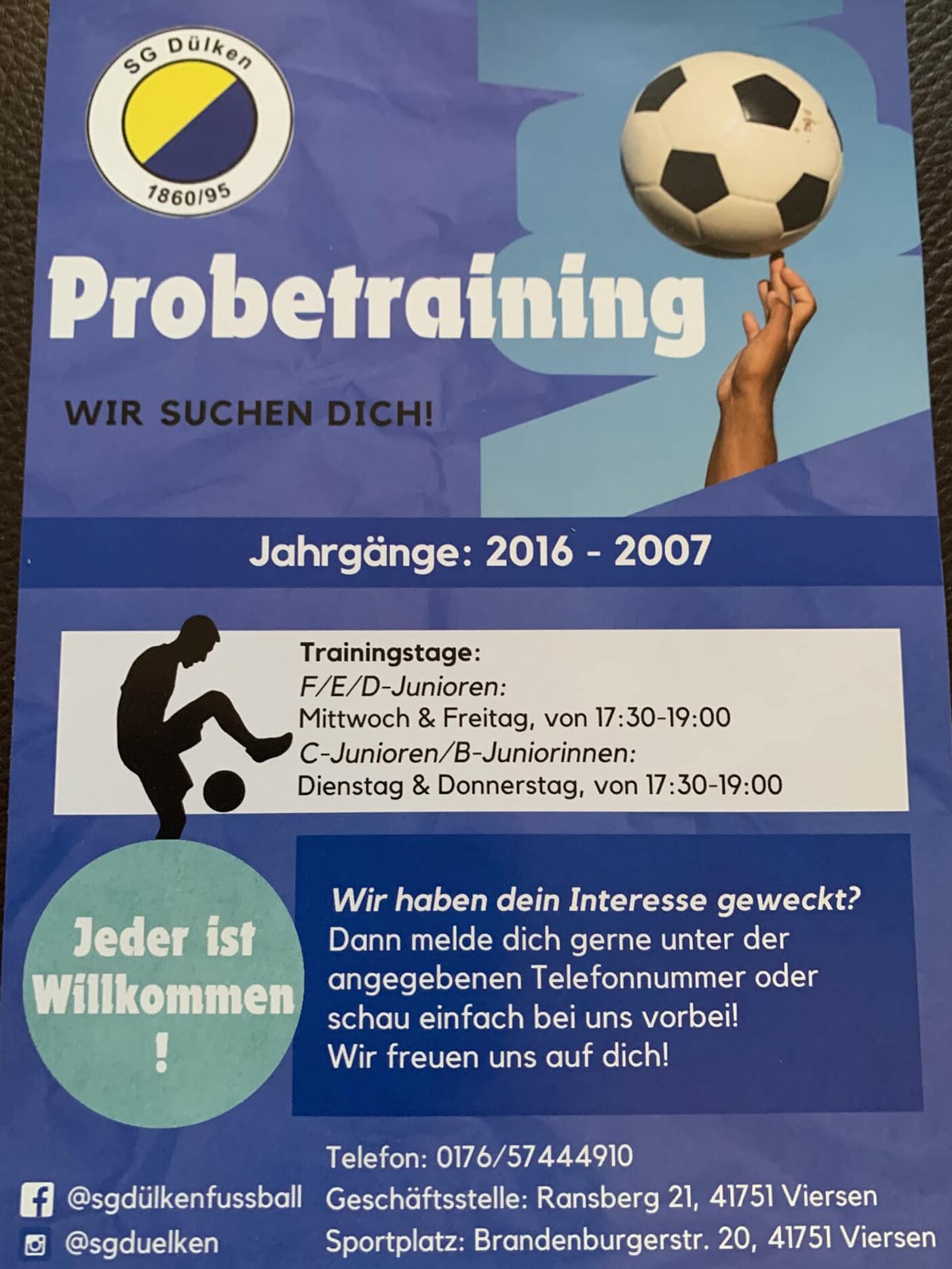 Die SG Dülken sucht neue MitspielerInnen in den Jahrgängen 2016 – 2007