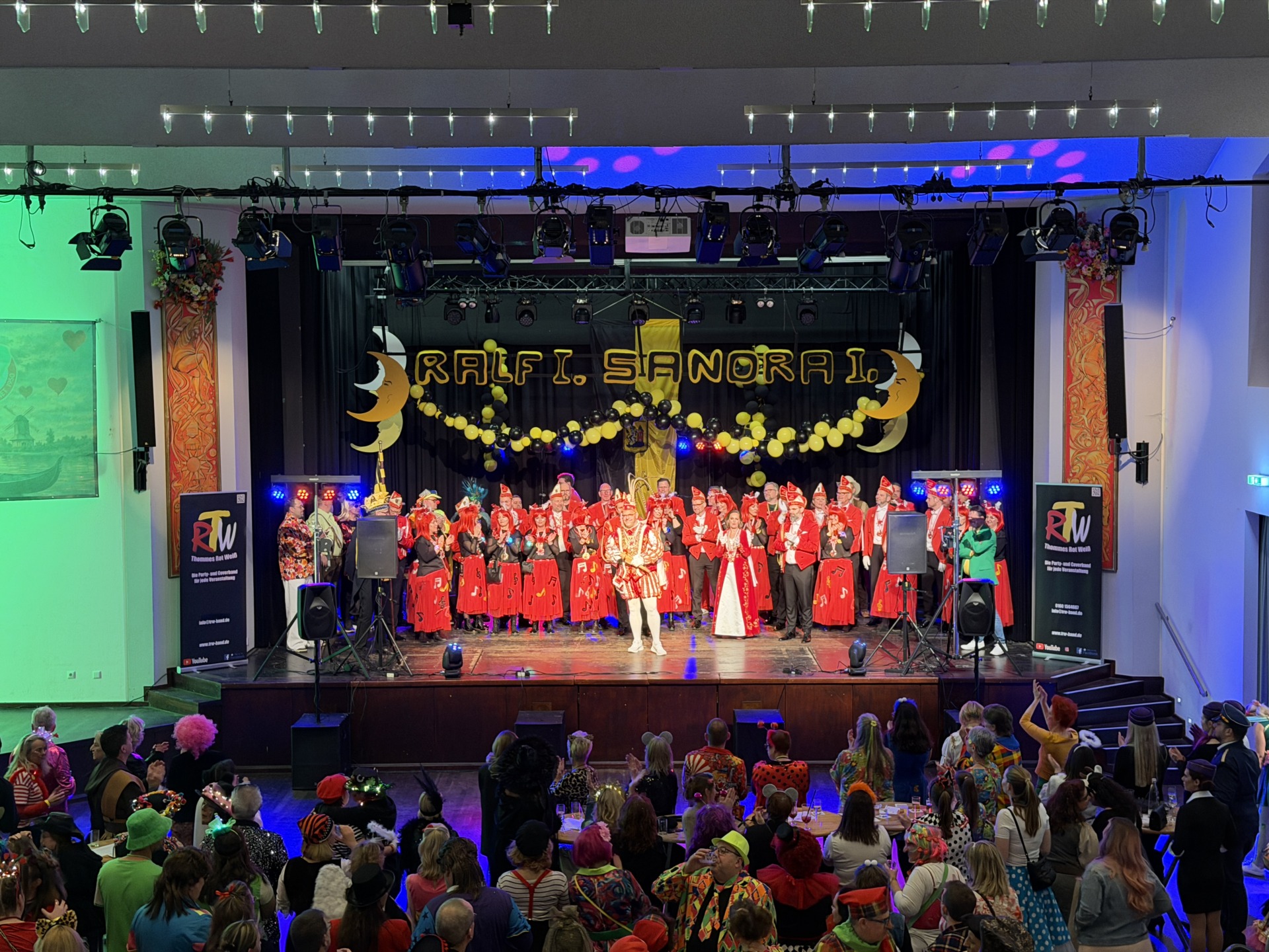 Kaum verklungen war der Jubel, übernahm die Band Thommes Rot Weiß das musikalische Zepter. Mit Klassikern und Mitsing-Hymnen brachten sie den Saal zum Kochen. Schon nach wenigen Takten standen die ersten Gäste schunkelnd in Reigen. Zwischen Western-Feeling und bunten Luftschlangen verwandelte sich das Bürgerhaus in einen Hexenkessel aus Rhythmus und Lebenslust.