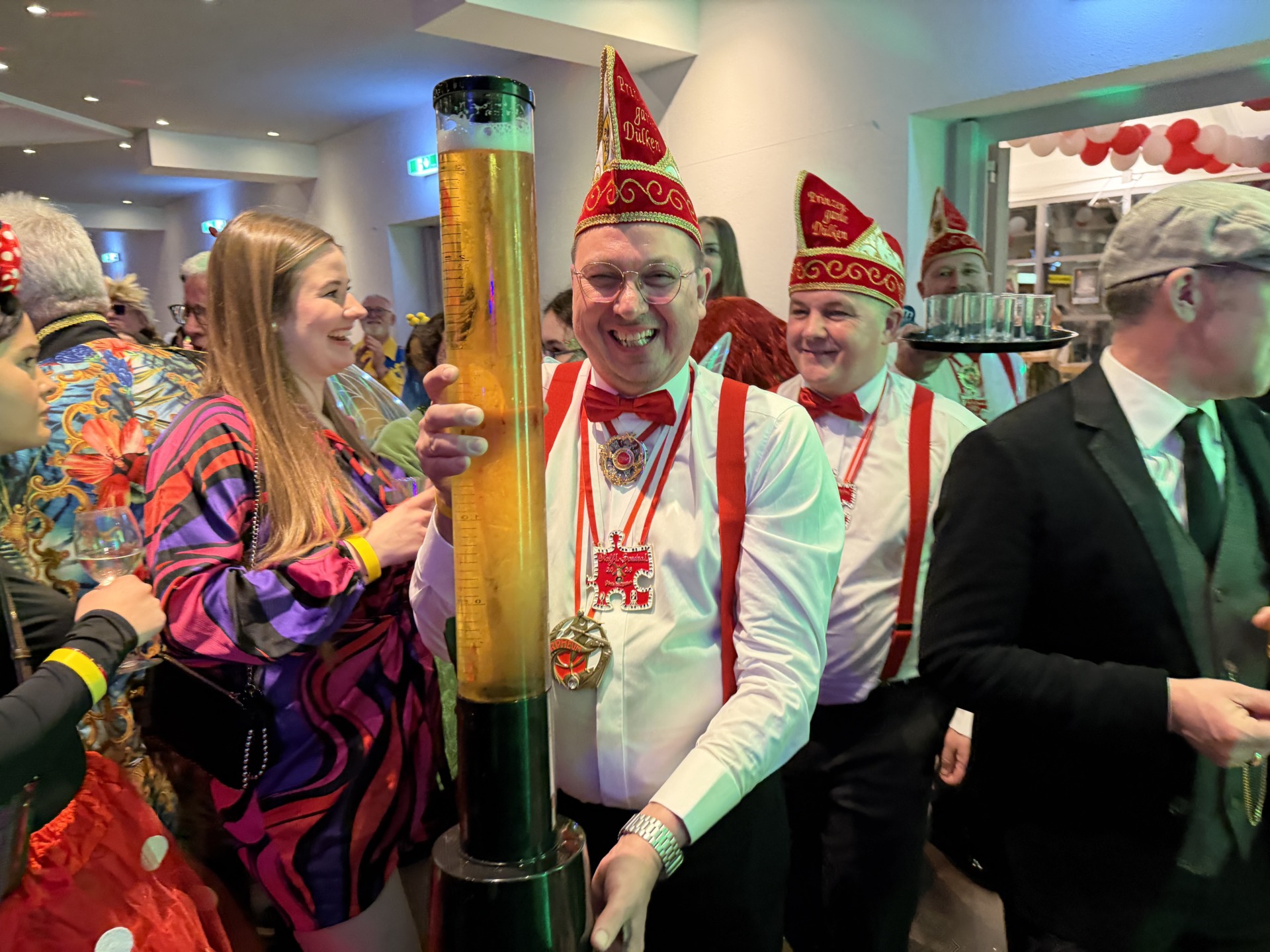 Nach seinem Auftritt ging es nahtlos weiter – wieder mit Thommes Rot Weiß, die bis kurz vor Mitternacht das Tempo hochhielten. Niemand dachte ans Gehen. Im Gegenteil: Je später der Abend, desto ausgelassener wurde die Stimmung. Es wurde getanzt, geschunkelt, gelacht, umarmt. Fremde lagen sich in den Armen, als würden sie sich seit Jahren kennen – so, wie es nur der Karneval schafft. (nb)