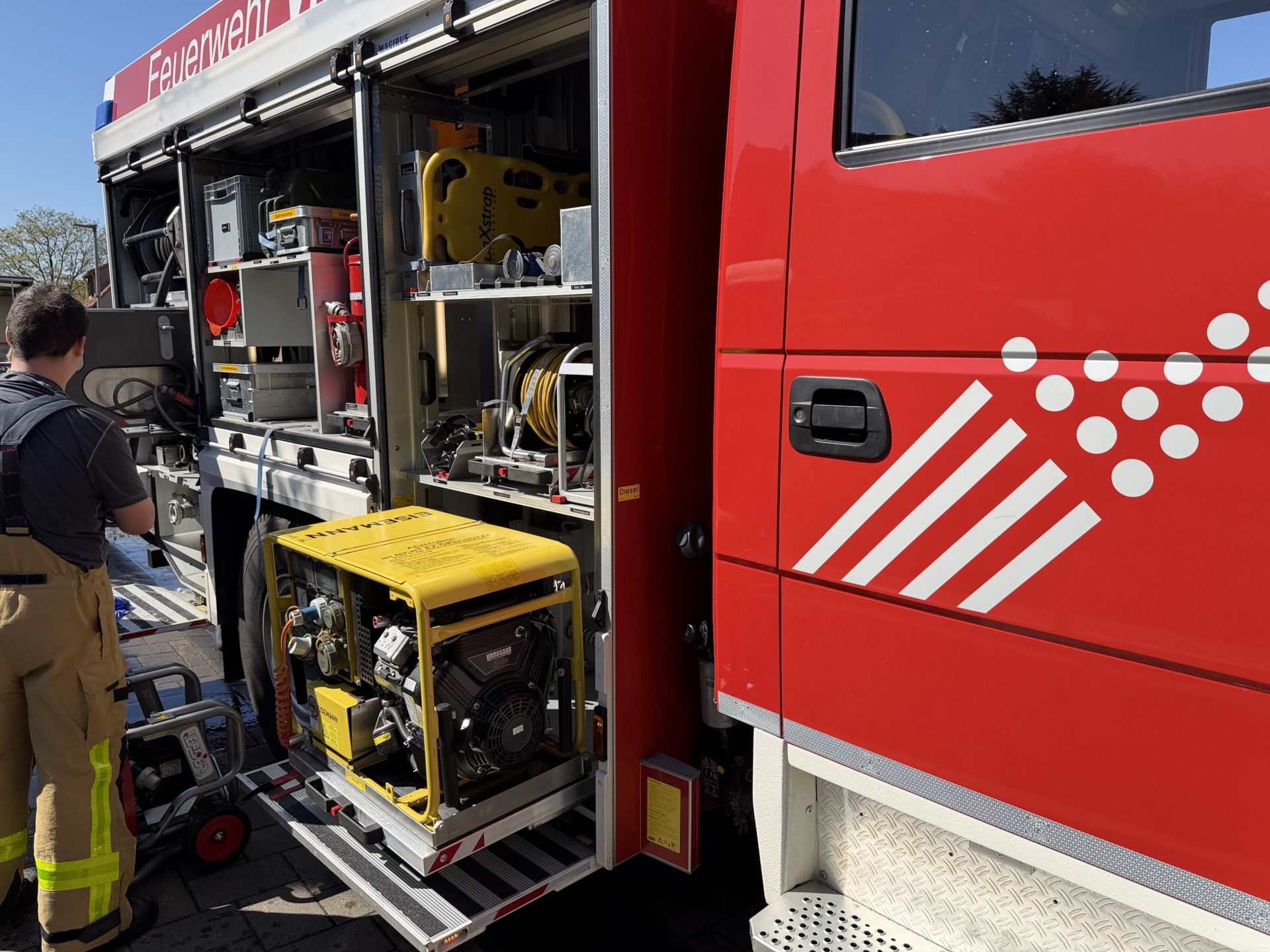 Diese Angaben bestätigten sich bei der Erkundung. Umgehend wurde ein Trupp unter Atemschutz mit einem C-Rohr zur Menschenrettung eingesetzt. Die Wohnungstür wurde mit einem mobilen Rauchverschluss gesichert, während der Flur mittels Lüfter rauchfrei gehalten wurde, um sichere Fluchtwege zu gewährleisten.