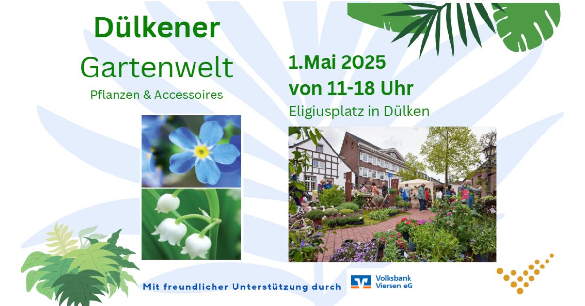 Am 1. Mai 2025 verwandeln sich der Eligiusplatz und ein Teil der Langen Straße bereits zum 15. Mal in die wunderschöne „Dülkener Gartenwelt“.
