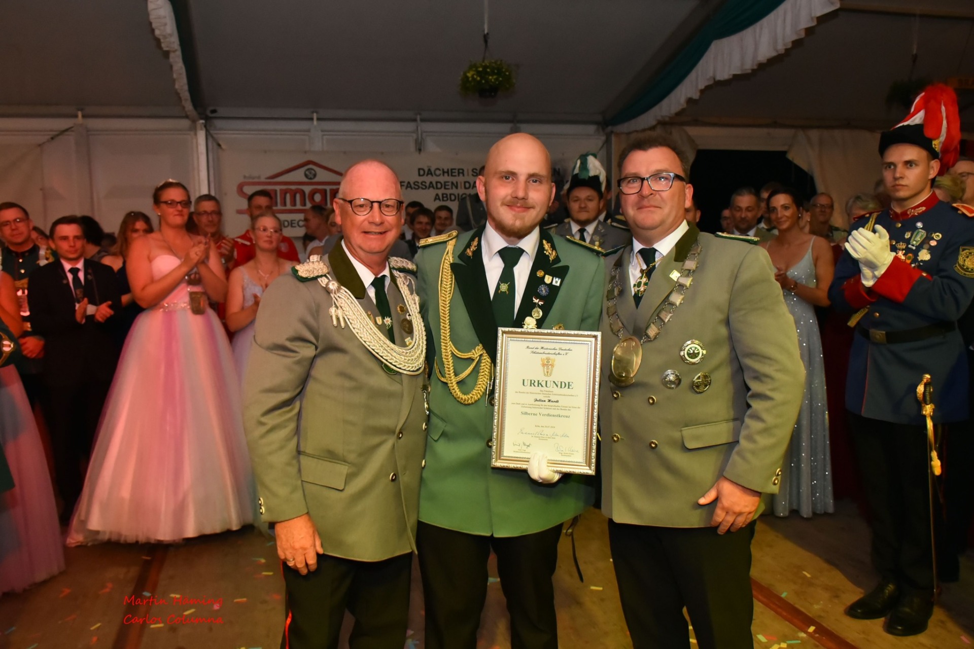 Ein weiterer Höhepunkt schloss sich am Abend mit dem Kaiserball an. Die Band „Die Kleinenbroicher“ sorgte für musikalische Unterhaltung und trug zur festlichen Atmosphäre bei. Der Abend endete mit Ehrentänzen bei denen die Schützen und ihre Partner in traditioneller Manier das Tanzbein schwangen und den Tag gebührend abschlossen.