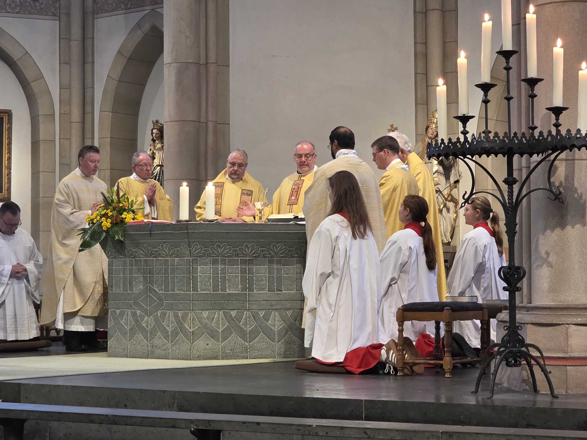 In den Bankreihen der Kirche war zu spüren, dass den Menschen vor allem eines wichtig ist: wieder einen festen Ansprechpartner in ihrer Pfarrei zu haben. „Mein Ziel ist es, Schritt für Schritt die Besonderheiten von St. Cornelius und Peter kennenzulernen“, erklärte Klugmann. Dieses behutsame Vorgehen scheint bei vielen Gemeindemitgliedern Vertrauen zu wecken. Dass die Feierlichkeit auch ein Fest der Begegnung war, zeigte sich nach dem Gottesdienst. Vor den Kirchenportalen drängten sich Menschengruppen, es wurden Hände geschüttelt, Glückwünsche ausgesprochen und auf vielen Gesichtern lag ein Lächeln – Zeichen einer neuen, gemeinsamen Geschichte. (sk)