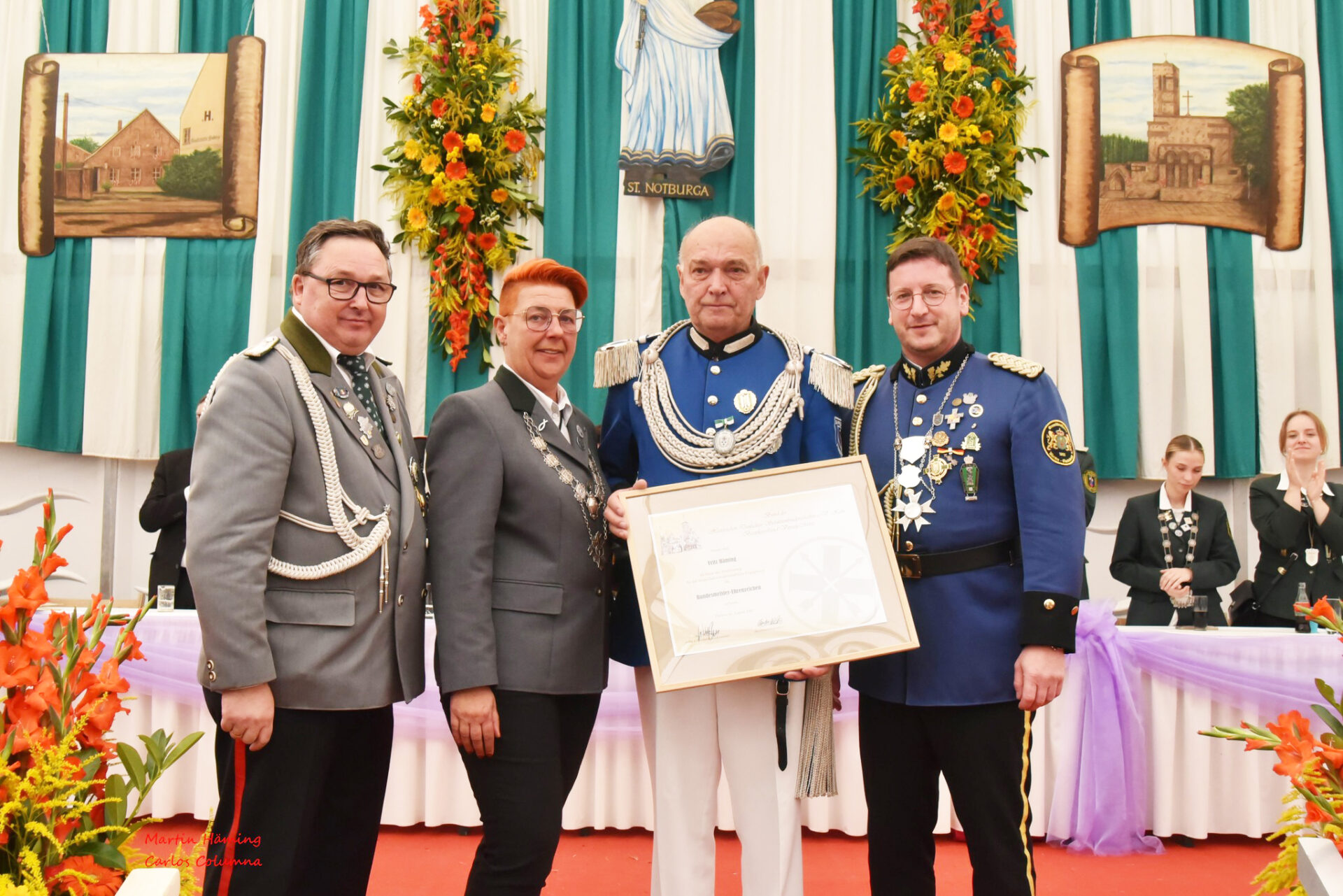 Ein ganz besonderer Höhepunkt des Festtages war die Ehrung der langjährigen Mitglieder, die mit ihrem Engagement und ihrer Treue das Rückgrat der Bruderschaft bilden. Mit einer Urkunde für 25 Jahre Treue wurde der Instrumentalverein Effeld gewürdigt, während Fritz Häming, Major der Sappeure, für seine Verdienste das Bundesmeister-Ehrenzeichen des Bezirksverbandes Viersen-Mitte erhielt.