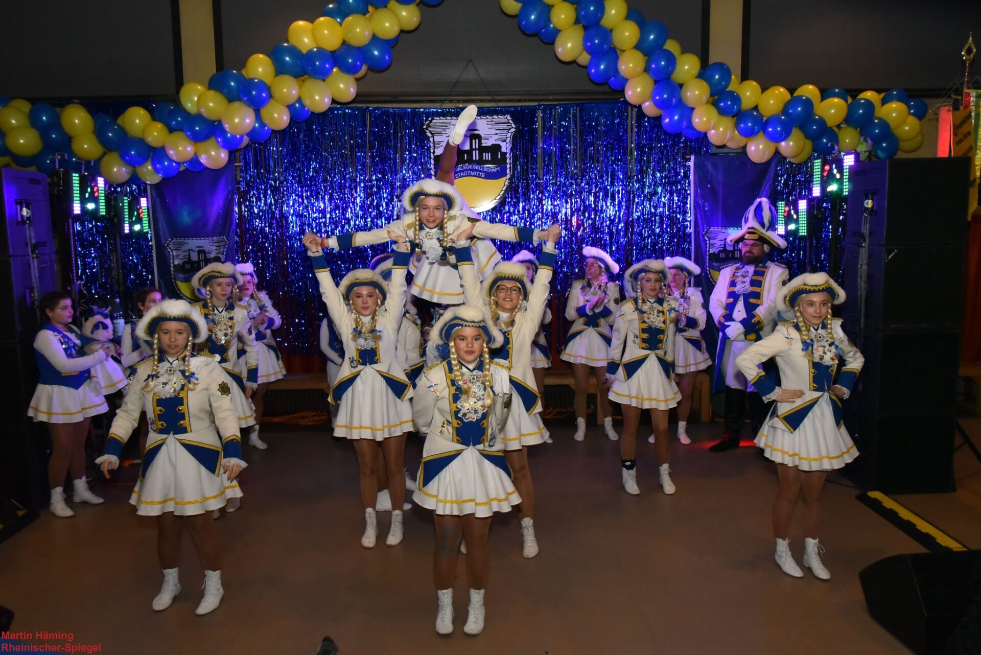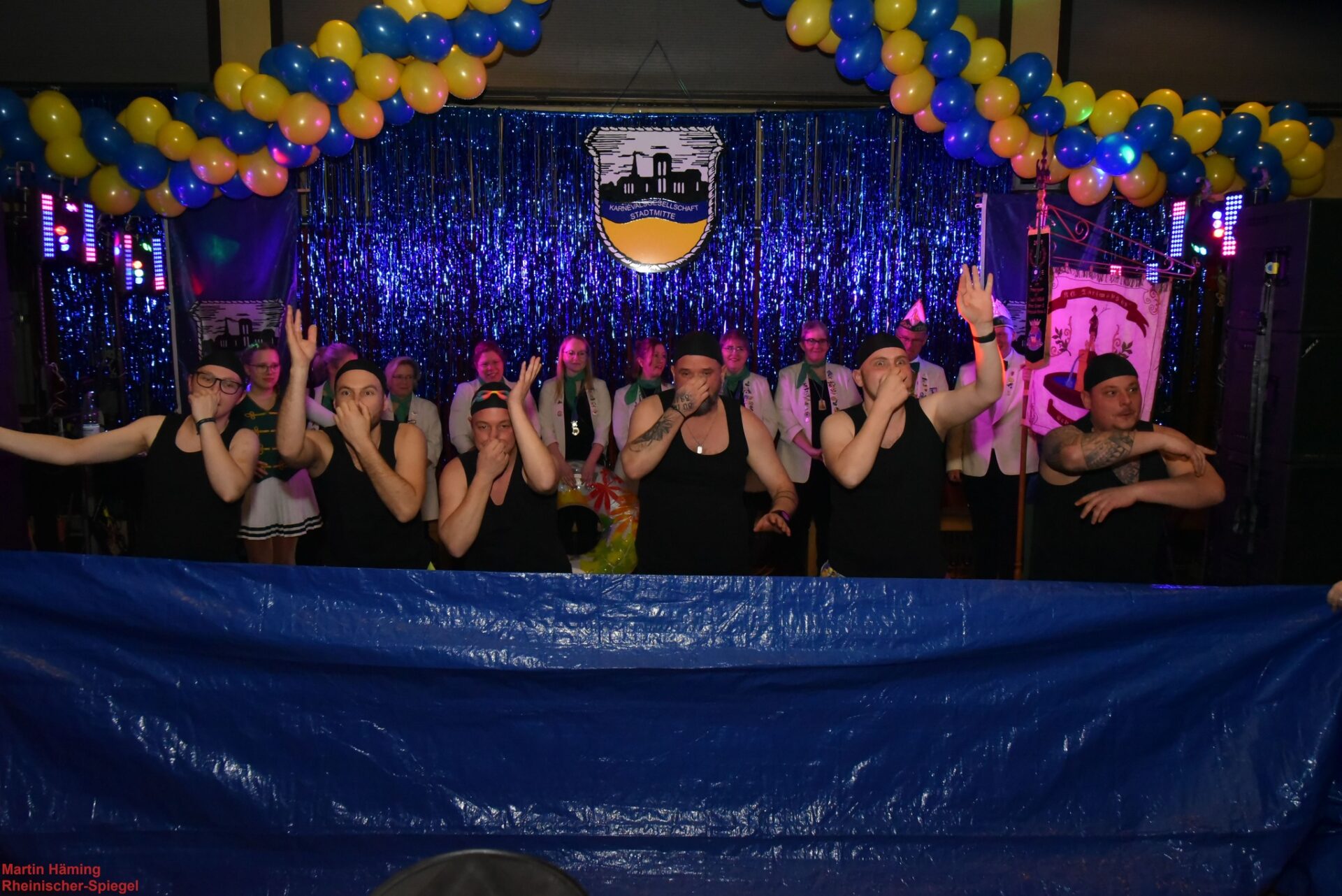 Den Schlusspunkt setzte das Männerballett der KG Torfmöps 68 Schiefbahn e. V. — ein tänzerischer Sturmangriff auf die Lachmuskeln: maskuline Over-the-top-Kostüme, choreografische Gags, synchronisierte Späße und eine Prise Slapstick. Das Männerballett spielte die volle Bandbreite des karnevalistischen Humors aus, und als die letzte Figur landete, jubelte der Saal.