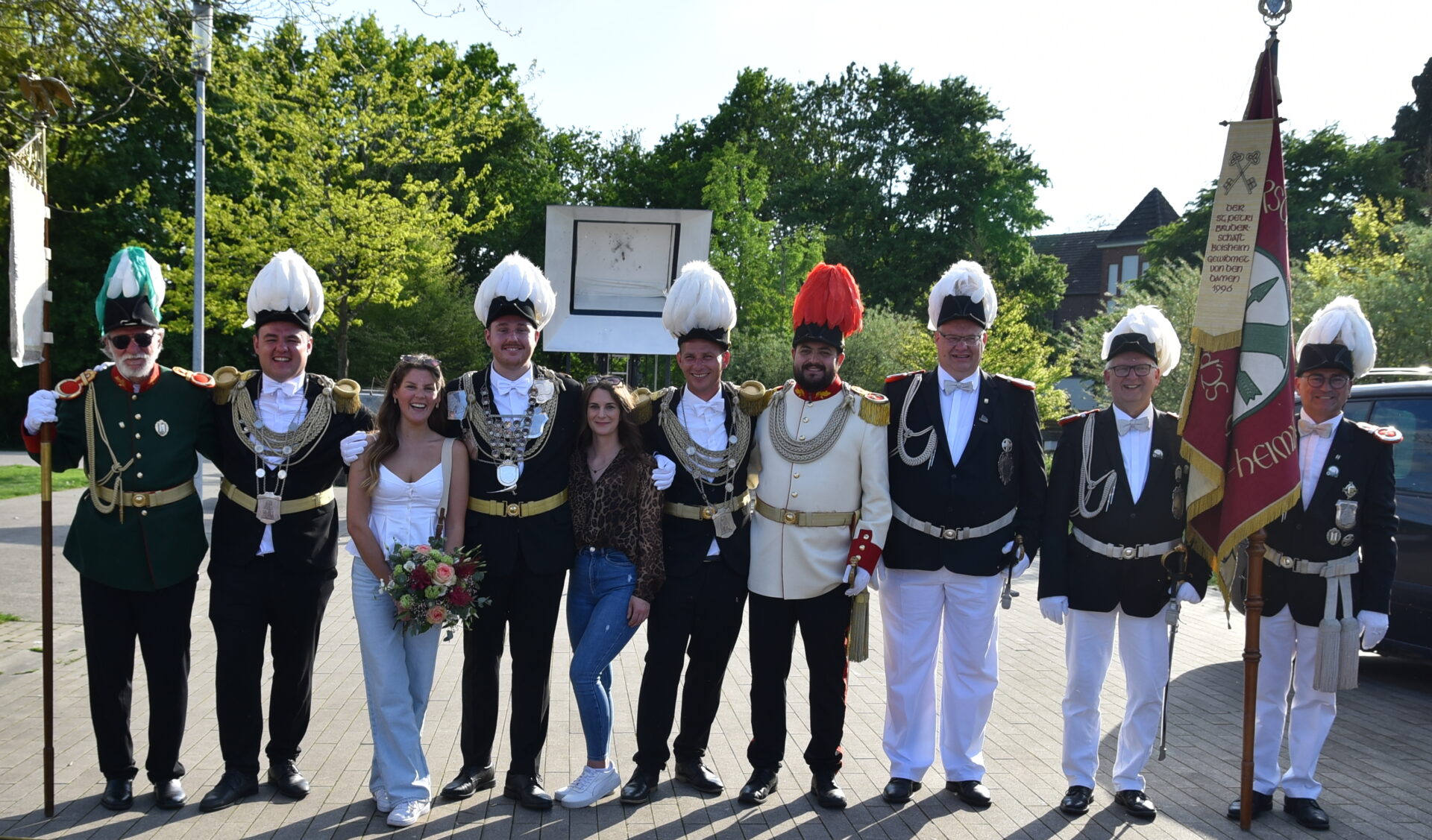 Nachdem die Könige Jörg Vierke (St. Georg Bruderschaft Dülken), Olaf Kuhlen (St. Udalricus), Jan van Kessel (St. Petri Boisheim) und ihre Minister nacheinander ihre Schüsse abgegeben hatten, fiel mit dem 136. Treffer schließlich das hölzerne Ziel. Unter dem Jubel der Zuschauer stand fest: Jan van Kessel ist neuer Bezirkskönig 2025! Ihm zur Seite stehen seine Minister Fabian Thoer und Tim Thomsing, die gemeinsam mit ihm die Farben der St. Petri Schützenbruderschaft in den kommenden Monaten repräsentieren werden.