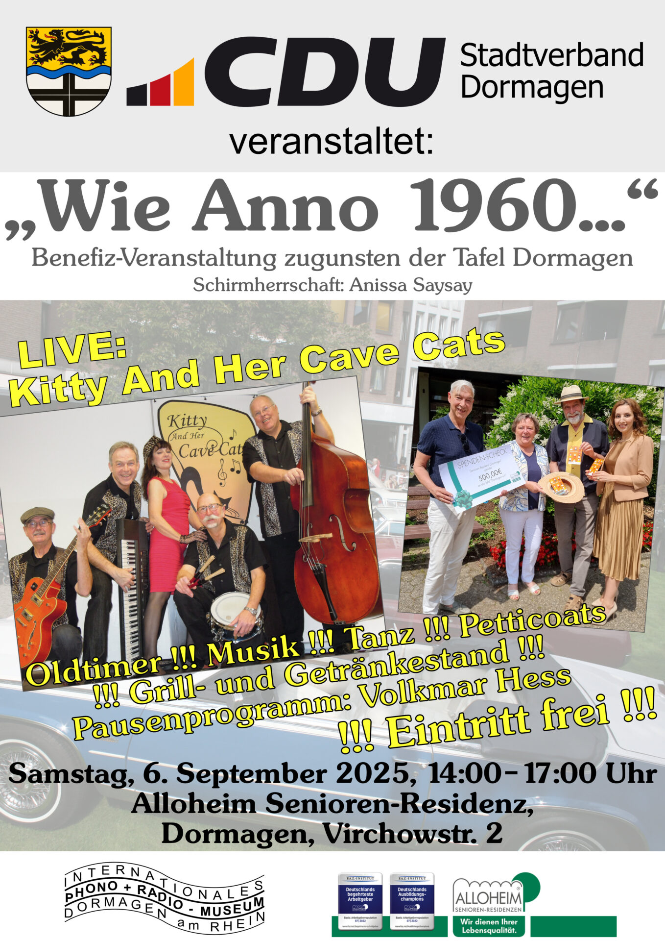 Region/Dormagen – Bewerbung bitte an Volkmar Hess, gerne mit Foto an volkmar@grammofon.de senden. Freuen Sie sich auf Kitty & her Cave Cats, eine kleine Sonderausstellung mit knisterndem Pausenprogramm und zahlreichen Tanzpaaren im Outfit der Wirtschaftswunderzeit – natürlich bei freiem Eintritt – der Hut geht zugunsten der Tafel Dormagen herum!