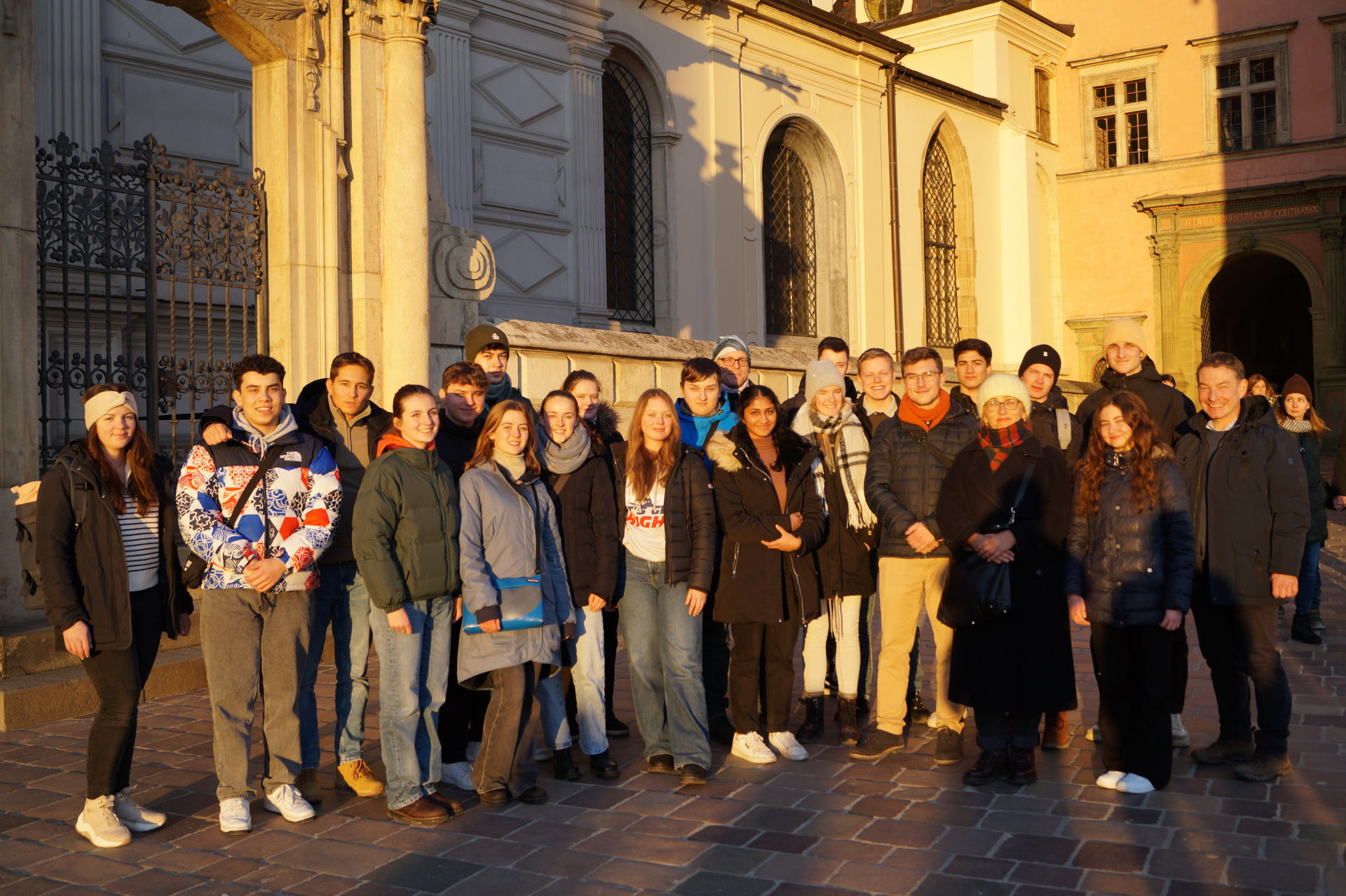 Vom 10. bis zum 15. Januar 2023 besuchten 19 Schülerinnen und Schüler der Stufe Q2 mit ihren Lehrern Lea Stein, Stephan Glaser und Sebastian Trienekens Auschwitz und Krakau.