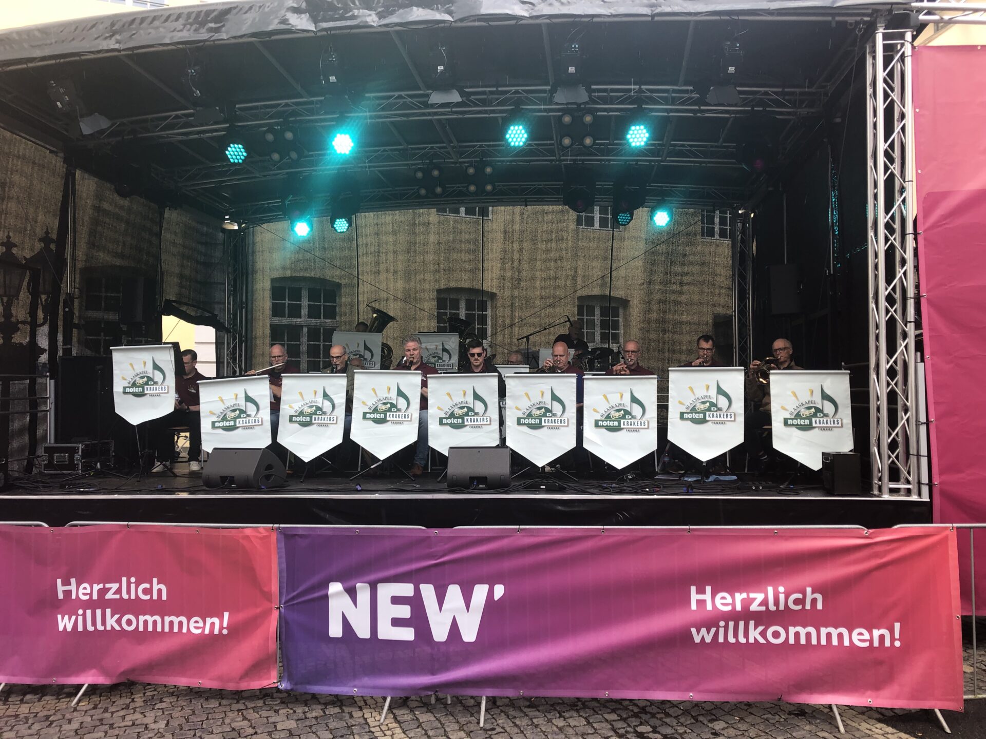 Die Hauptbühne am Kreuzherrenplatz, gesponsert von der NEW, erwies sich auch in diesem Jahr wieder als Besuchermagnet. Am Samstagabend brachten die Bands Plexiphones und Boobylicious die Menge zum Tanzen. Von Indie-Rock bis Pop-Cover wurde alles geboten, was für ausgelassene Stimmung sorgte – mitreißend, laut und voller Energie.