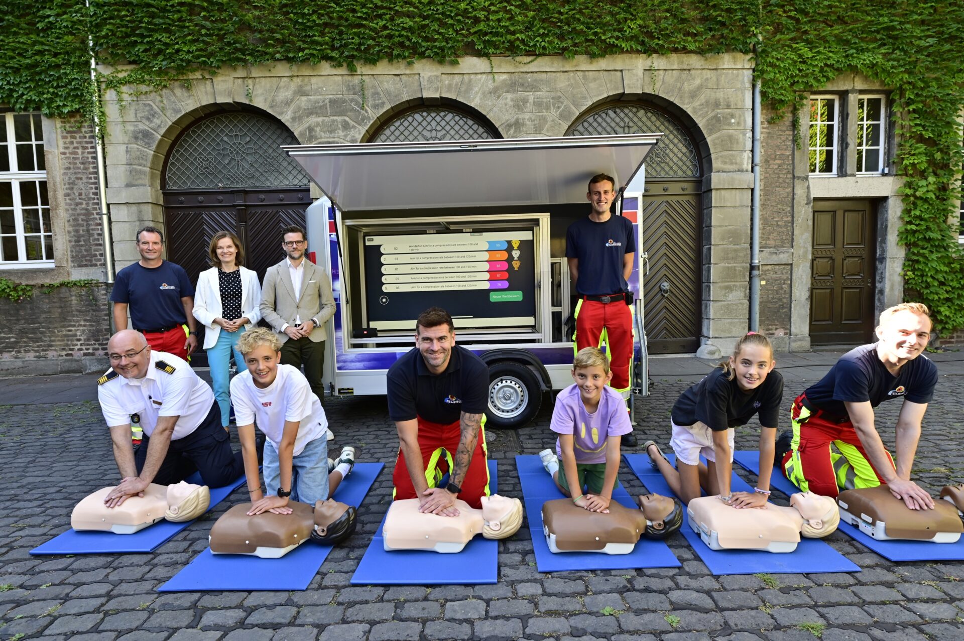 Das neue Reanimationstrainingsmobil der Feuerwehr Mönchengladbach ist offiziell vorgestellt worden. Mit dem einzigartigen Projekt können Einsatzkräfte, aber auch Bürger*innen künftig auf spielerische Weise die Reanimation trainieren und ihre Kenntnisse vertiefen.