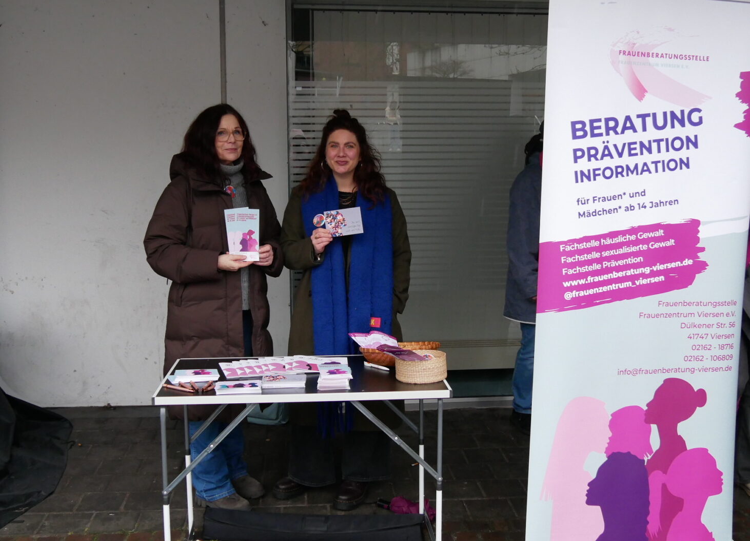 Organisatorisch war die Veranstaltung ein Zusammenspiel verschiedener lokaler Akteure. Die Stadt Viersen stellte den öffentlichen Raum zur Verfügung; Diakonie und SkF brachten fachliche Expertise und Beratungsangebote ein; das Frauenzentrum war mit Informationsmaterial und Ansprechpartnerinnen präsent. Die Gleichstellungsbeauftragte Swantje Day hatte zur Teilnahme eingeladen und zusammen mit den Partnern die Aktion beworben — mit dem Ziel, das Thema im Alltag sichtbar zu machen und eine breite Debatte über Prävention und gesellschaftliche Verantwortung anzustoßen.