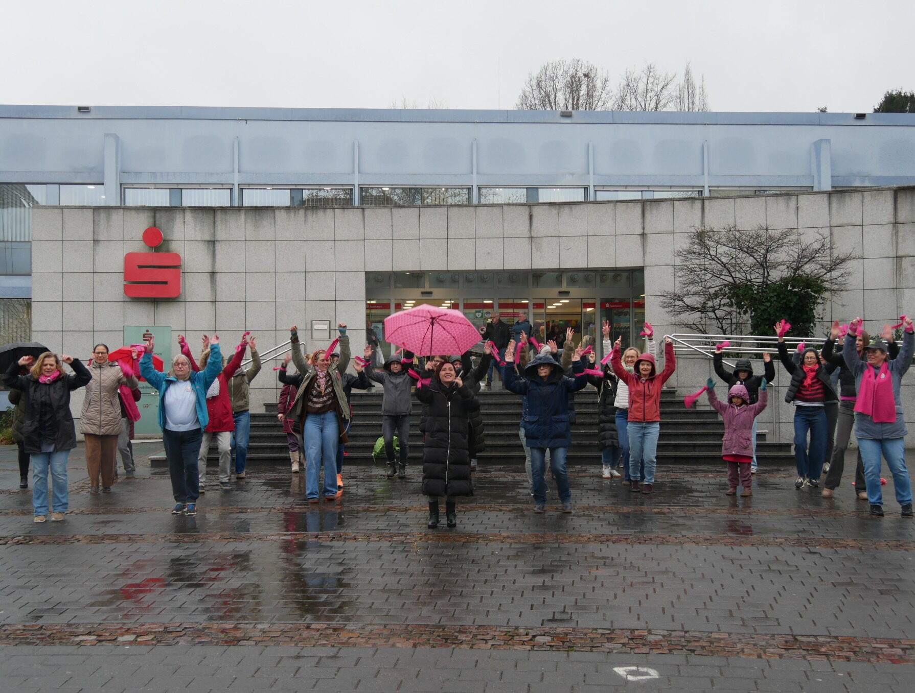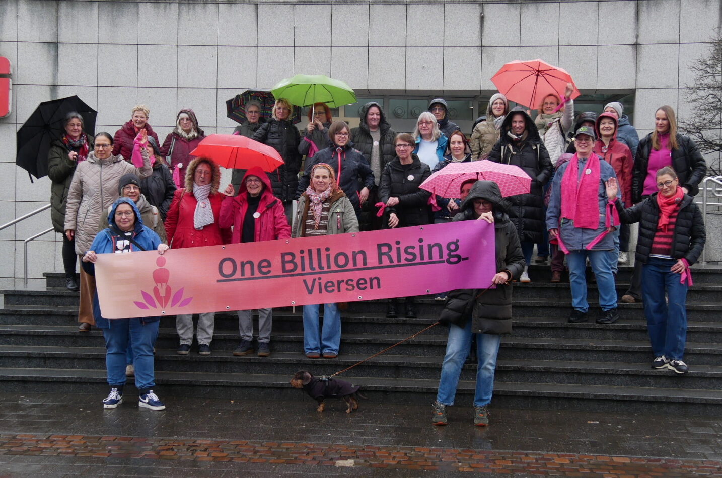 Am Mittwochnachmittag verwandelte sich der Sparkassenvorplatz in Viersen trotz des Regens in einen Ort des Protests und der Solidarität: Hier versammelten sich Tanzende, um mit jeder Bewegung ein starkes Zeichen gegen Gewalt an Frauen zu setzen – Teil der globalen Aktion One Billion Rising.
