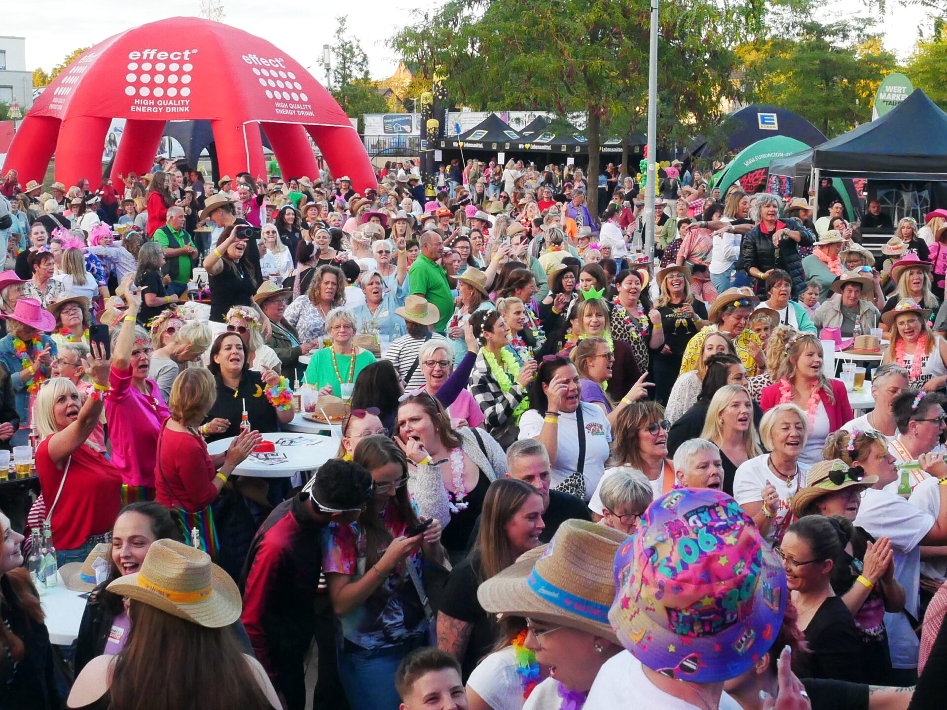 Zum großen Finale hieß es dann: Mir sin Jeck – und das nicht nur auf der Bühne, sondern in jeder Ecke des Platzes. Sänger René, Entertainer durch und durch, brachte mit kölschem Humor und echten Party-Hits den Abend zum Überkochen. Akkordeon, Gitarre und Schlagzeug peitschten die Damen noch einmal in Ekstase, bis keiner mehr stillstand. Tanja fasste es mit einem Grinsen zusammen: „Ich hab das Gefühl, ich könnte noch drei Stunden tanzen – so krass war die Stimmung!“