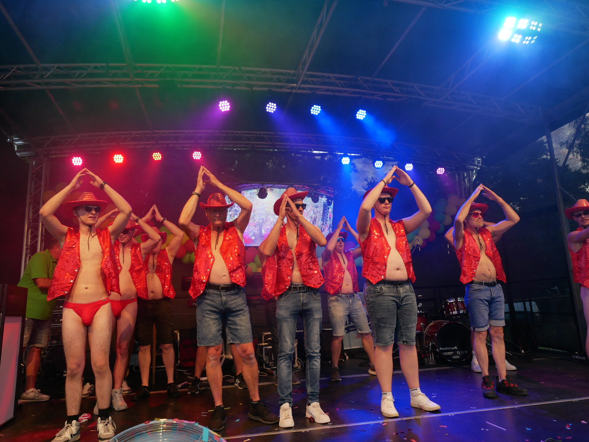 Ein echtes Heimspiel lieferte die Räd Män Group der Ki Ka Kai a. Kreischende Damen, nackte Männerbrüste, rote String-Tangas und ein Flashback in die 90er, als sie den Blümchen-Hit „Herz an Herz“ performten – es war eine wilde Mischung aus Nostalgie und Ekstase. „Das war unsere Jugend! Wir haben geheult vor Lachen und gleichzeitig getanzt wie verrückt!“, erzählte Nadine strahlend.