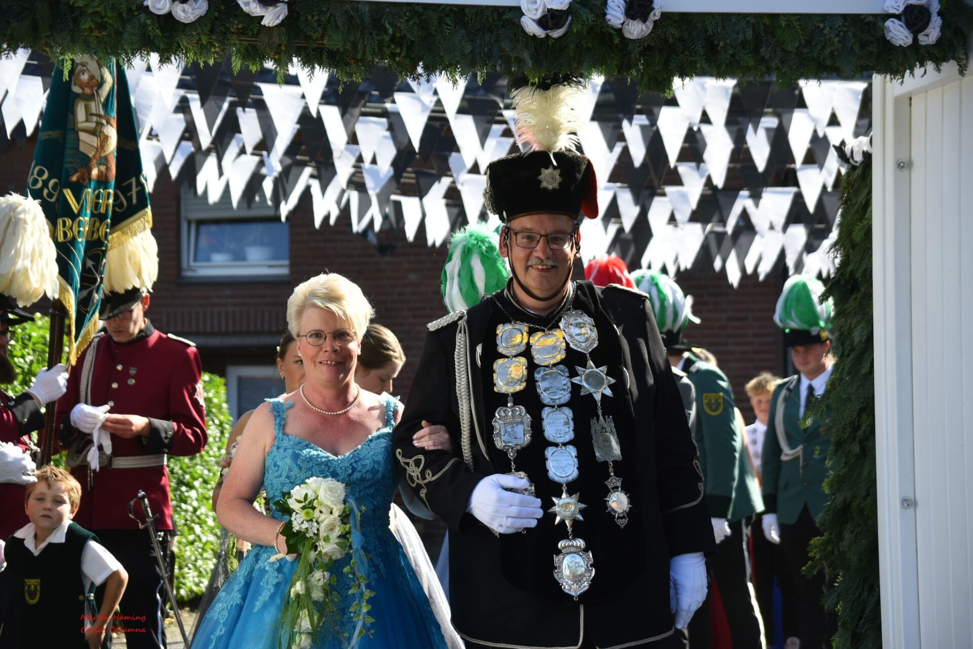 Viersen – Schon der Auftakt versprach königliche Stimmung: Das Königshaus wurde standesgemäß von der prachtvoll geschmückten Residenz abgeholt. In einem feierlichen Umzug, begleitet von Schützen in Uniform, Fahnen und begeisterten Zuschauern am Straßenrand, ging es durch die Sektion direkt ins festlich dekorierte Festzelt. Musikalisch sorgte neben traditionellen Schützenklängen die beliebte Live-Band Teamwork für ein abwechslungsreiches Programm, das von schwungvollen Klassikern bis zu modernen Partyhits reichte. Bereits nach den ersten Takten füllte sich die Tanzfläche – und sollte bis in die späte Nacht nicht mehr leer bleiben.