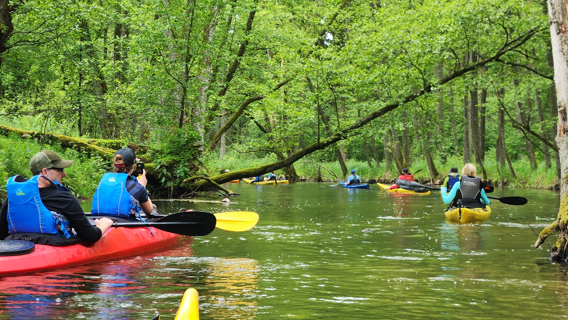 „Höhepunkt im letzten Jahr“, so Karl Schippers, „ war sicherlich die mehrtägige Gepäckfahrt auf der Krutynia in Polen von Sorkwity bis Ruciane-Nida mit 118 km Länge, aufgeteilt auf fünf Etappen. Insgesamt 13 Paddlerinnen und Paddler aus dem Verein haben an der Tour teilgenommen. Die Krutynia gehört zu den schönsten und bekanntesten Wasserwanderwegen Polens. Sie befindet sich in der Masurischen Seenplatte im Nordosten Polens. Die durch zahlreiche Flüsse und Kanäle verbundenen Seen bilden ein wunderbares und einmaliges Wassersportrevier mit einer hervorragenden Infrastruktur für Kanutouren“.