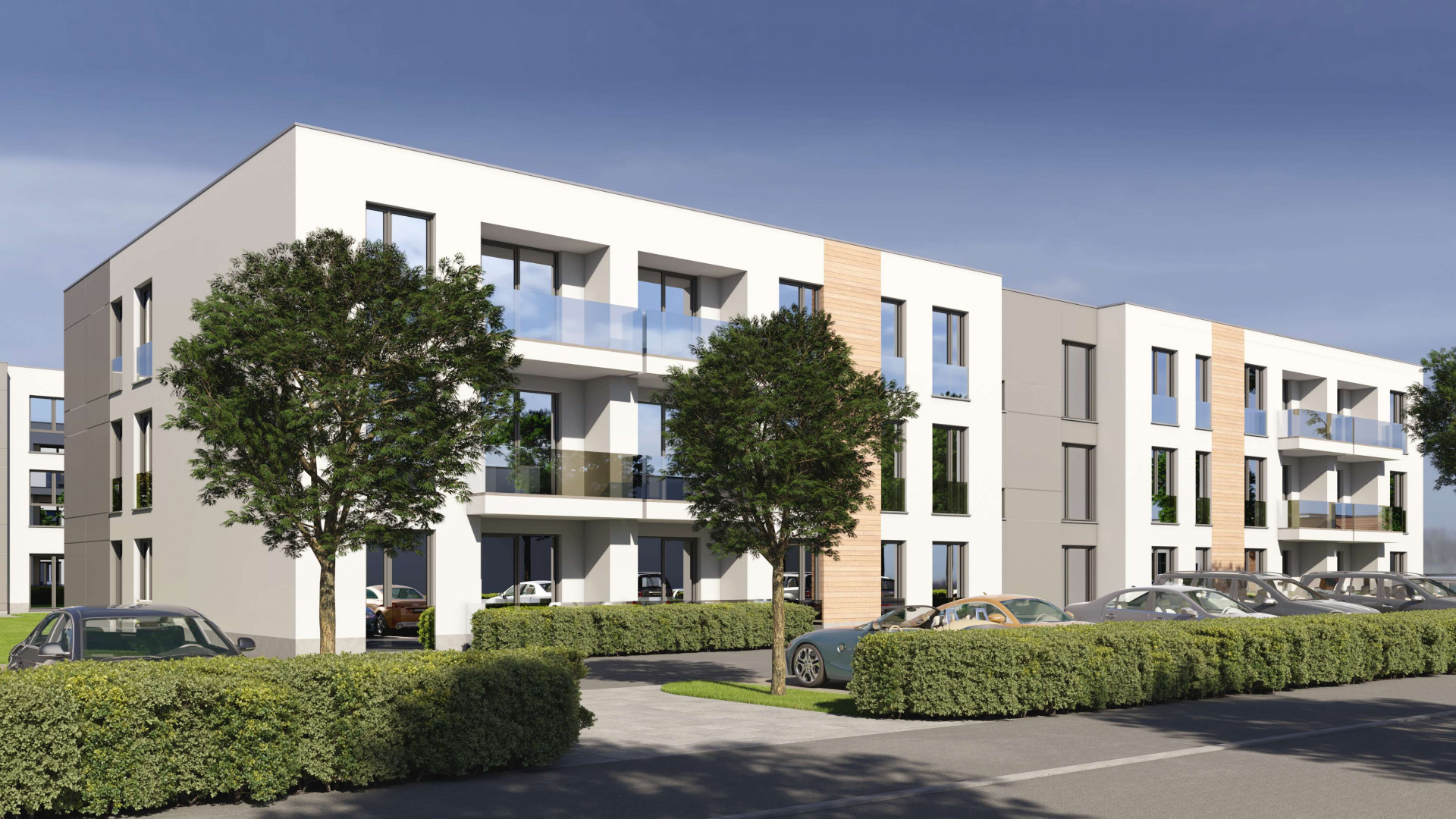 Die sich an das Hauptgebäude anschließenden beiden Nebengebäude fügen sich harmonisch zu einem Gesamt-Ensemble zusammen. Dort entstehen 72 Wohnungen mit umfangreichen Serviceangeboten ab 50 bis zu 100 Quadratmetern. Stilvolle, bezugsfertige Wohnungen mit Balkon oder Terrasse. Alle Wohnungen verfügen über eine moderne Einbauküche, einen Abstellraum sowie ein schwellenfreies Bad. Ebenso verfügen die meisten Wohnungen über eine Terrasse oder einen Balkon. Zudem ist jede Wohnung mit einem Waschmaschinenanschluss ausgestattet. Pkw-Stellplätze können angemietet werden und stehen auch für Besucher in ausreichender Anzahl zur Verfügung. Die gesamte Anlage ist barrierefrei und mit Aufzügen ausgestattet.